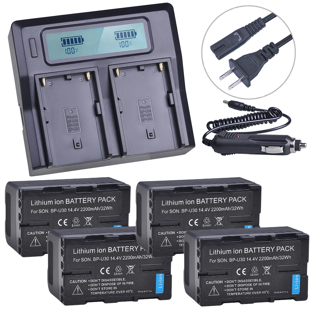 4x2200 мА ч BP-U30 BP U30 аккумулятор + быстрое двойное зарядное устройство с ЖК-дисплеем для Sony BPU30