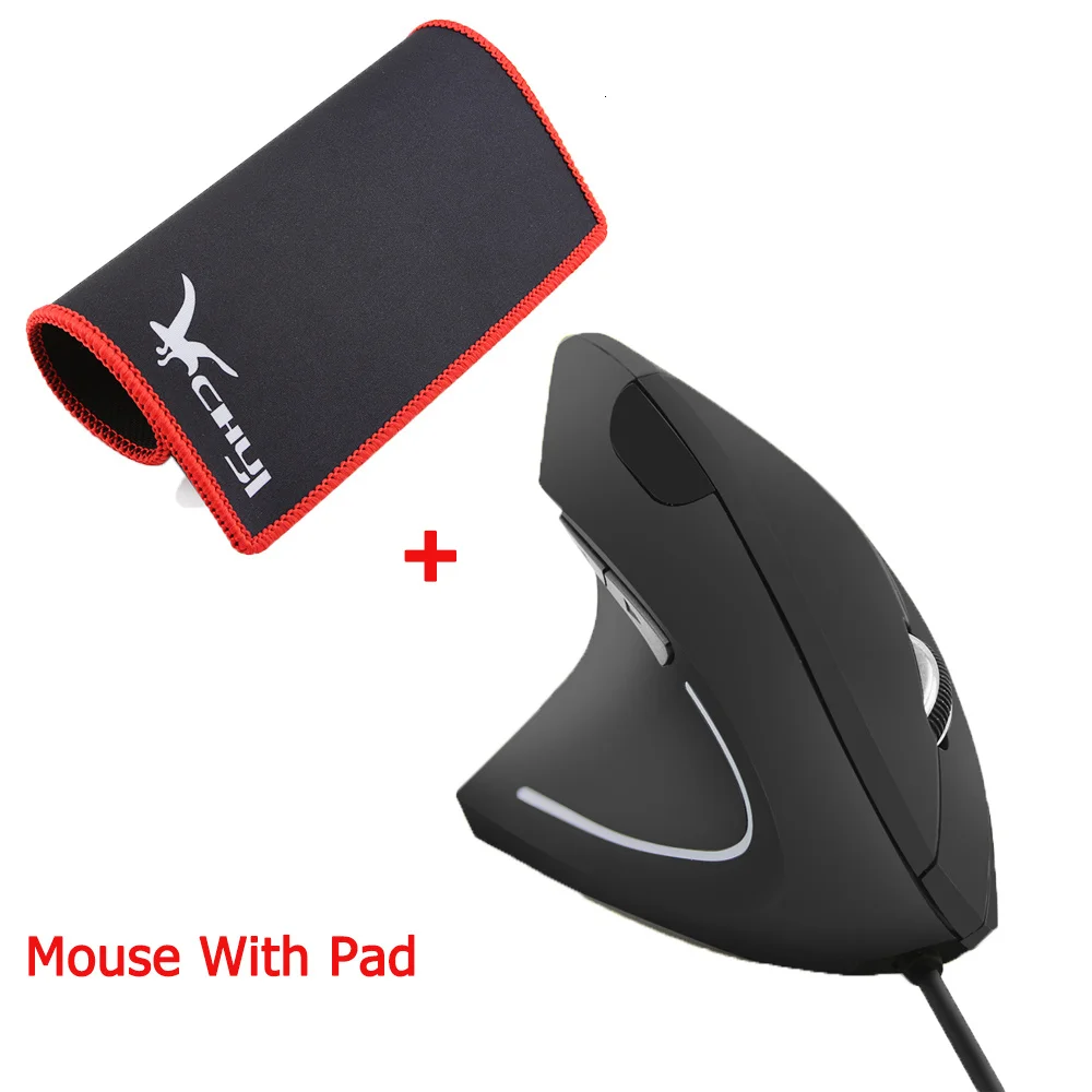 Проводная мышь CHUYI с левой рукой, вертикальная, эргономичный дизайн, игровая мышь, 1600 DPI, оптическая подставка для запястья, геймер, мыши с ковриком для Мыши для ПК
