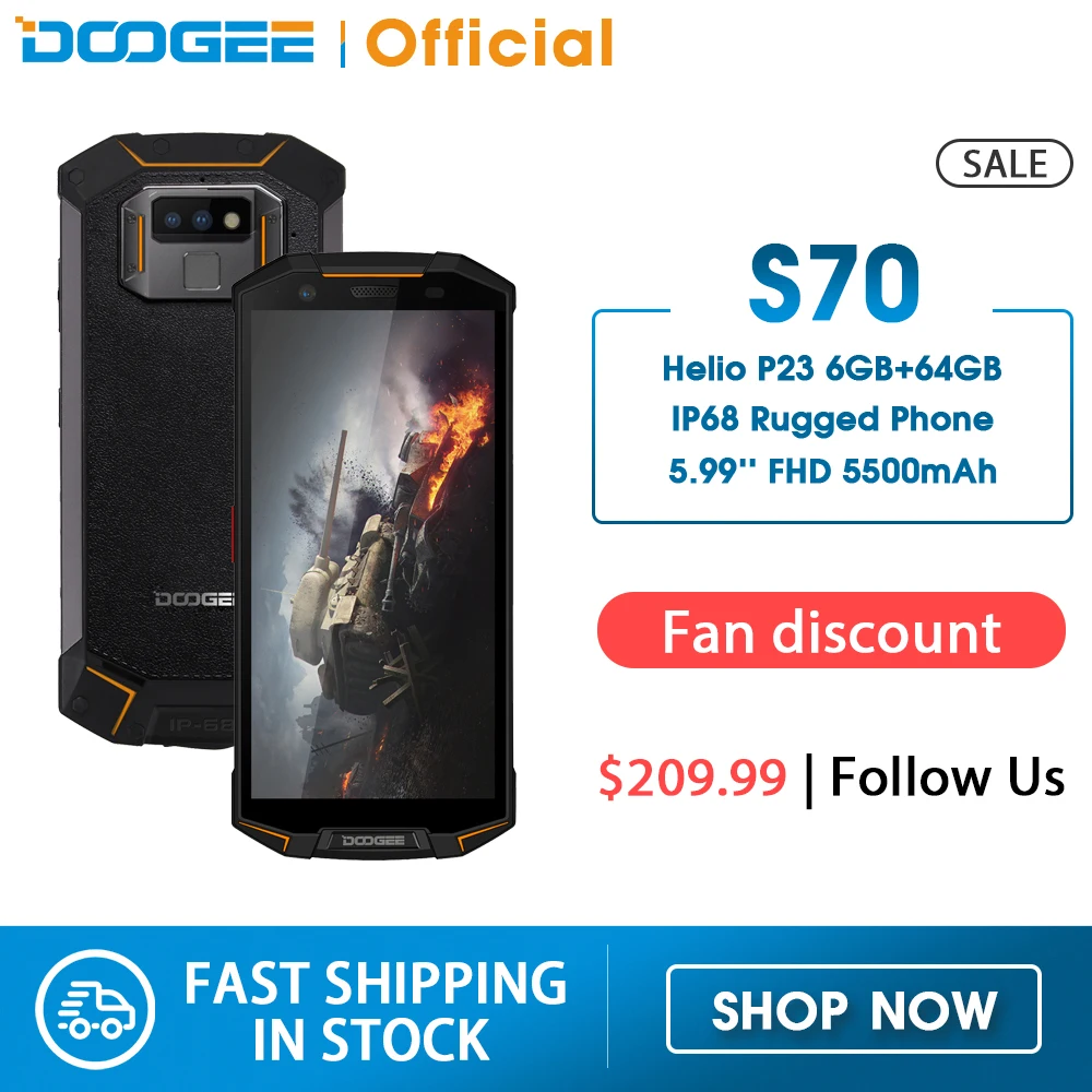 DOOGEE S70 игровой телефон IP68IP69K водонепроницаемый беспроводной заряд NFC 5500 мАч 12V2A Быстрая зарядка 5,99 FHD Helio P23 Восьмиядерный 6 ГБ 64 ГБ