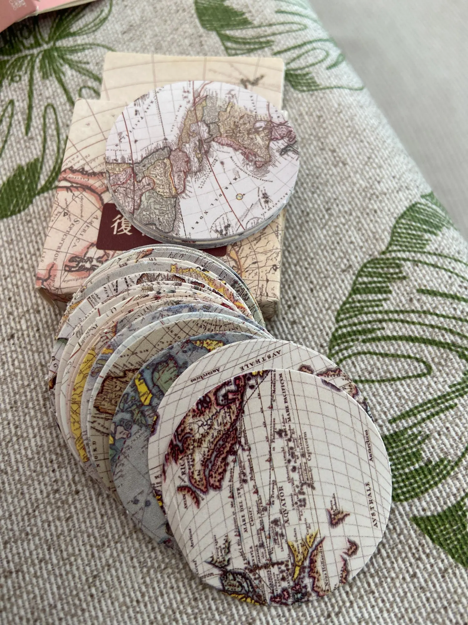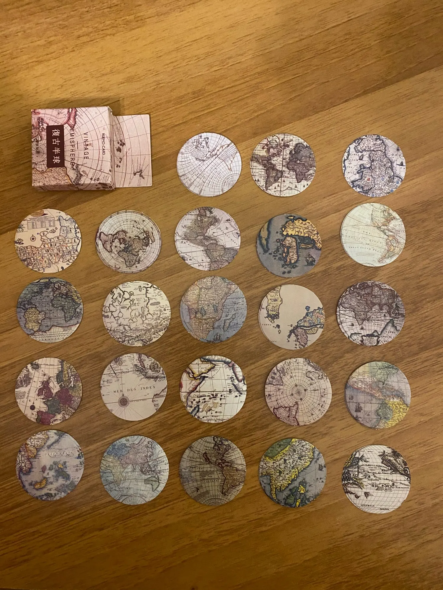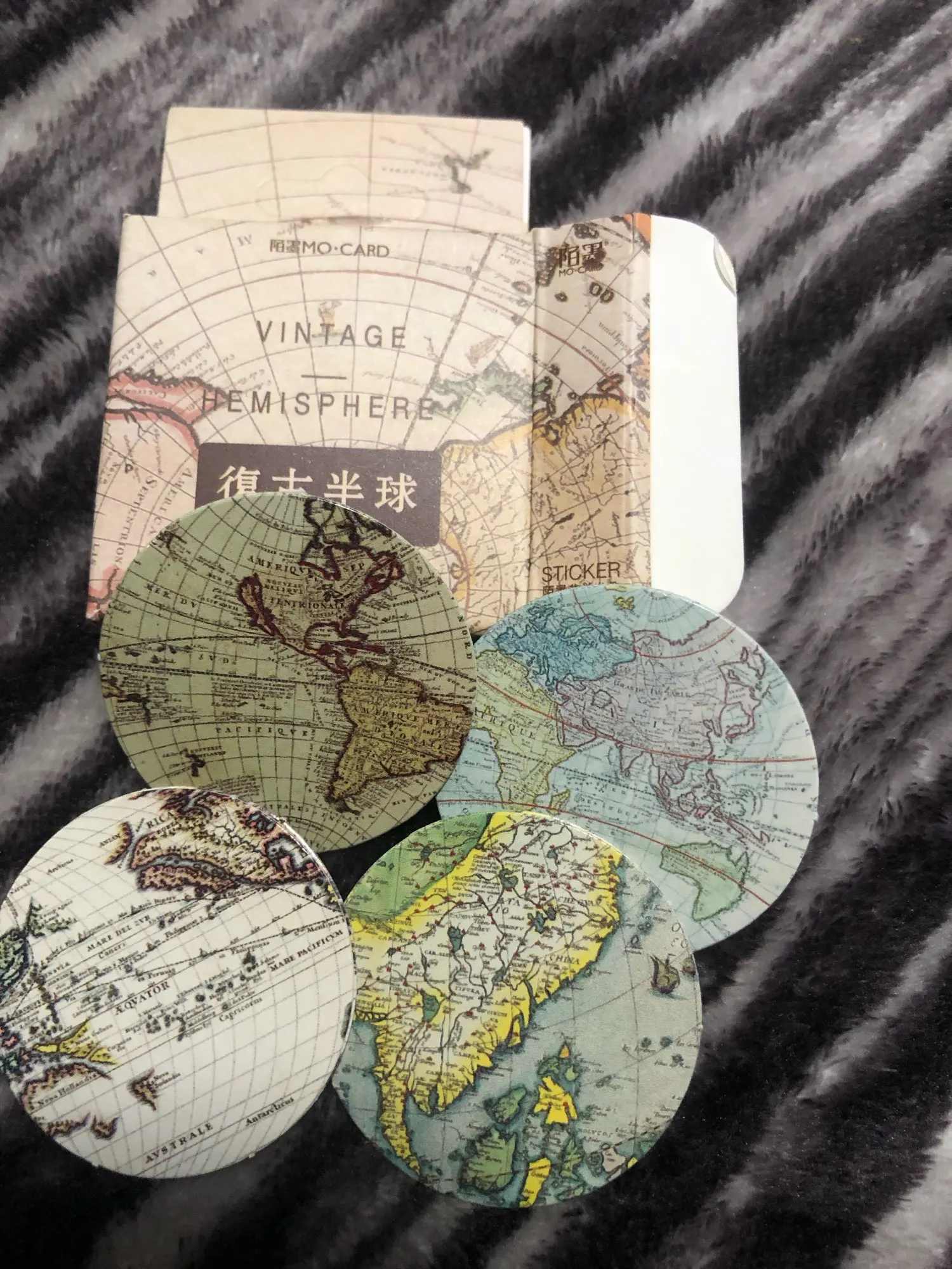 Великолепные винтажные наклейки на глобус. Легко очищается и хорошо липнет. Тонн в упаковке и длится долгое время