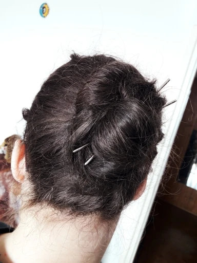 Высококачественные палочки для волос, не слишком толстые, но действительно прочные. Они не сгибаются и хорошо держат волосы в течение всего дня и даже ночью, если они хорошо прилипают. Я выбрал вариант родиевого цвета, и они действительно красивые. Благодаря маленькому отверстию можно легко закрепить изделие на конце карандаша. Длина достаточно, чтобы держать булочку, даже если волосы имеют много объема. Так как она не сильно торчит, ее проще носить шапочку или капюшон, чем в случае длинных палочек для волос. Отправлено очень быстро, хорошо упаковано. Очень доволен покупкой.