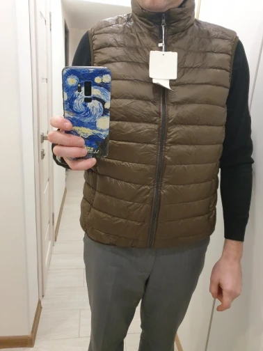 Очень хороший жилет, тоненький и тёпленький. На 48/50 подошёл 2xl. Доставка быстрая. Спасибо