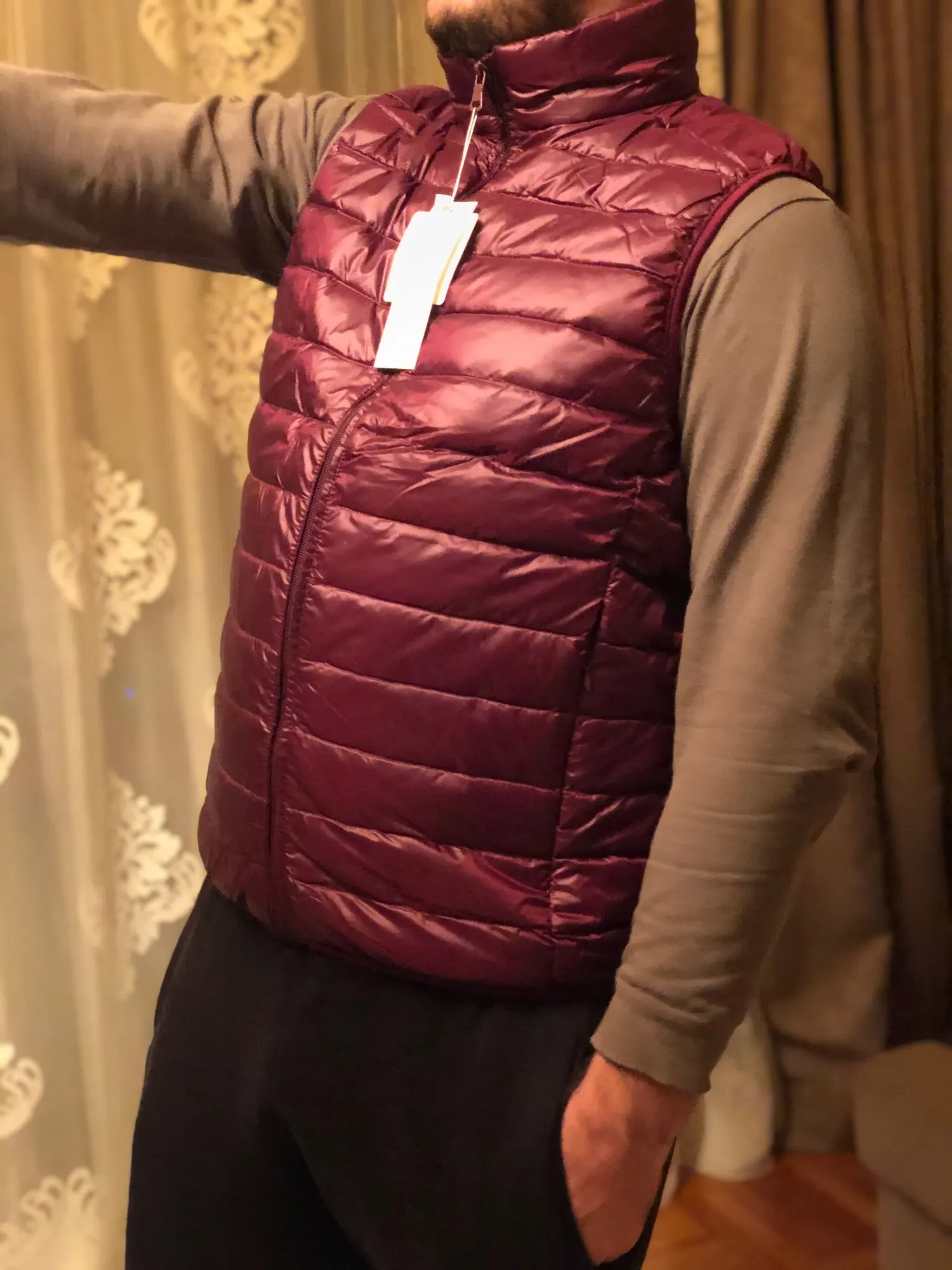 Жилет мужской на белом утином пуху, ультралегкий безрукавка, модный Свободный жилет с воротником-стойкой, большие размеры, зима