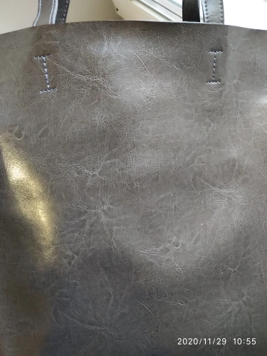 Сумка соответствует описанию. Кожа (пресованная) плотная, толстая, покрытие глянцевое, серое с оттенком коричневого. Красивый цвет. Ожидала, что будет чуть больше, но это скорее моя невнимательность. Центральным большим карманом сумка разделена на 3 отделения, есть карман на замочке и 2 кармана без замка, а также 2 скрытых глубоких кармана у ручек сумки. Обнаружила их, когда потеряла кошелёк)))) Немного скользит при носке на плече или соскальзывает с коленей при сидении, думаю, привыкну. С продавцом не общалась. Доставка во Владивосток около 3 недель. Упакована была в тонкий пакет из нетканного материала, в целофановый пакет и в пластиковый пакет доставки. Пришла в хорошем состоянии, без заломов и т.д. Выглядит достойно, посмотрим, как покажет себя в носке