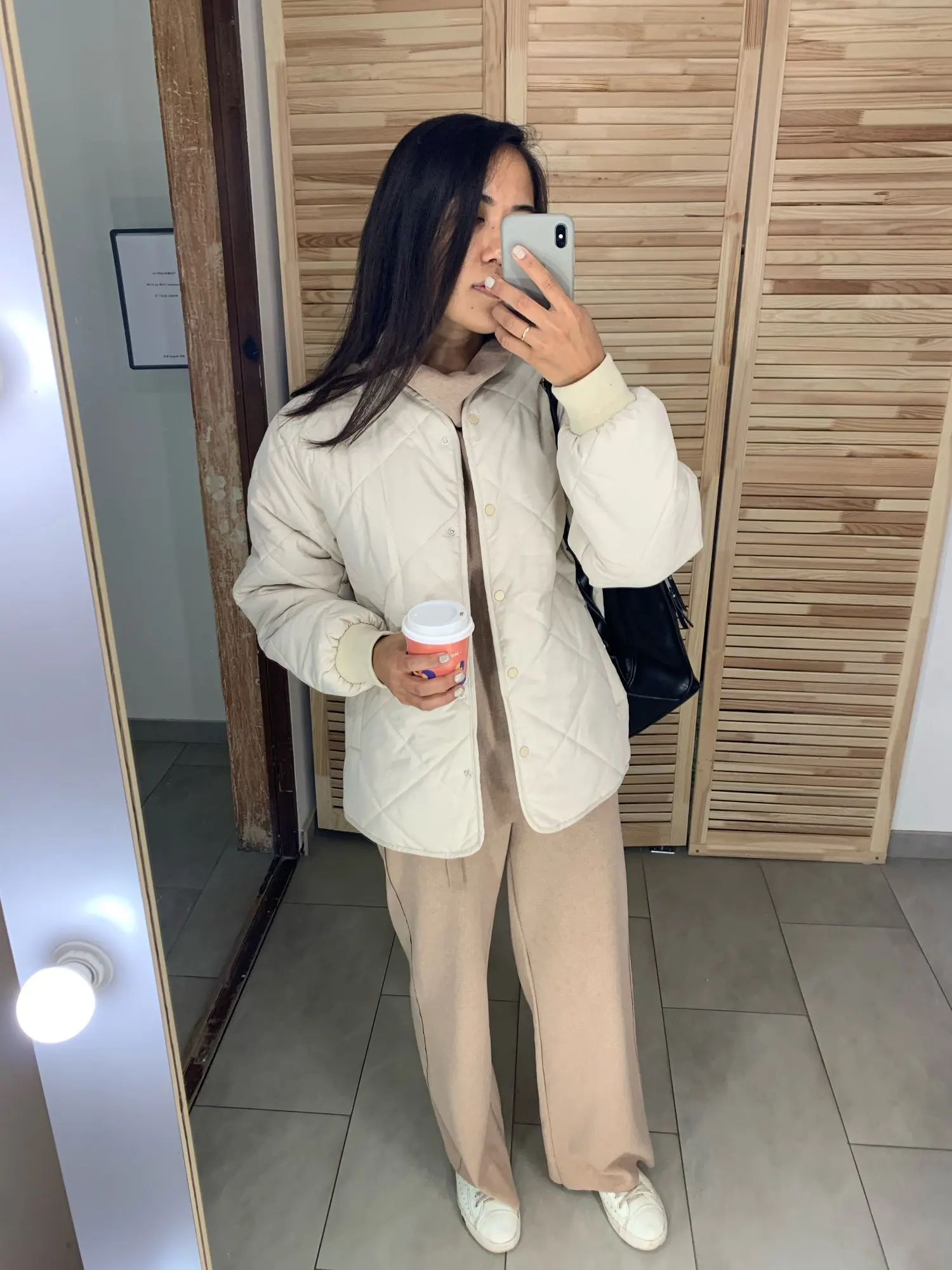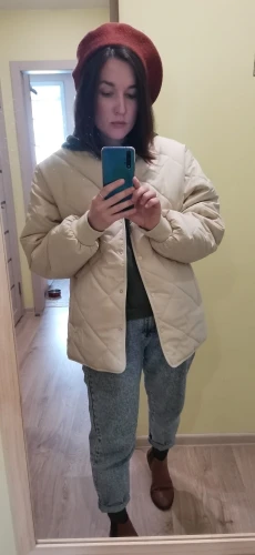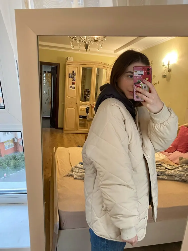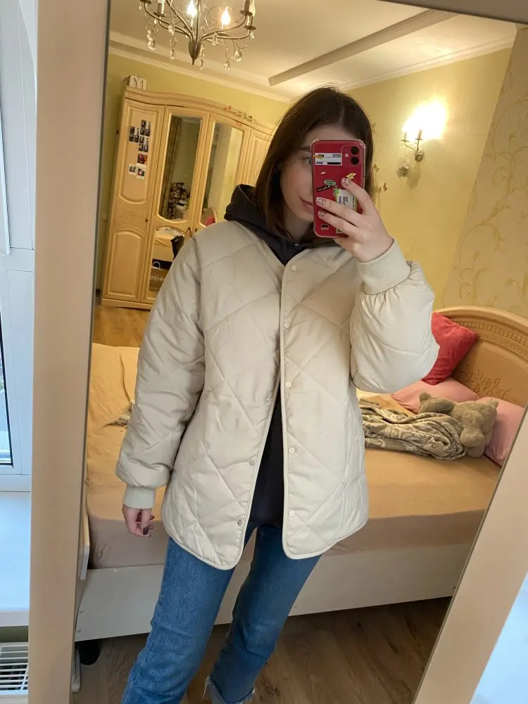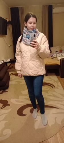 потрясающая куртка! 1в1 как на фотографии продавца! курточка стильная, теплая, удобная! цвет– топленое молоко, очень красивый! прям на почте распаковала и надела, дошла до дома в -10°C (15 минут), на тонкий лонгслив– не замёрзла! на рост 160 и вес 54 кг с запасом, рукава широкие, планирую носить на флисовый спортивный костюм. после стирки дополню отзыв фотографиями. кстати, доставка 2 недели до РТ, г Казань.