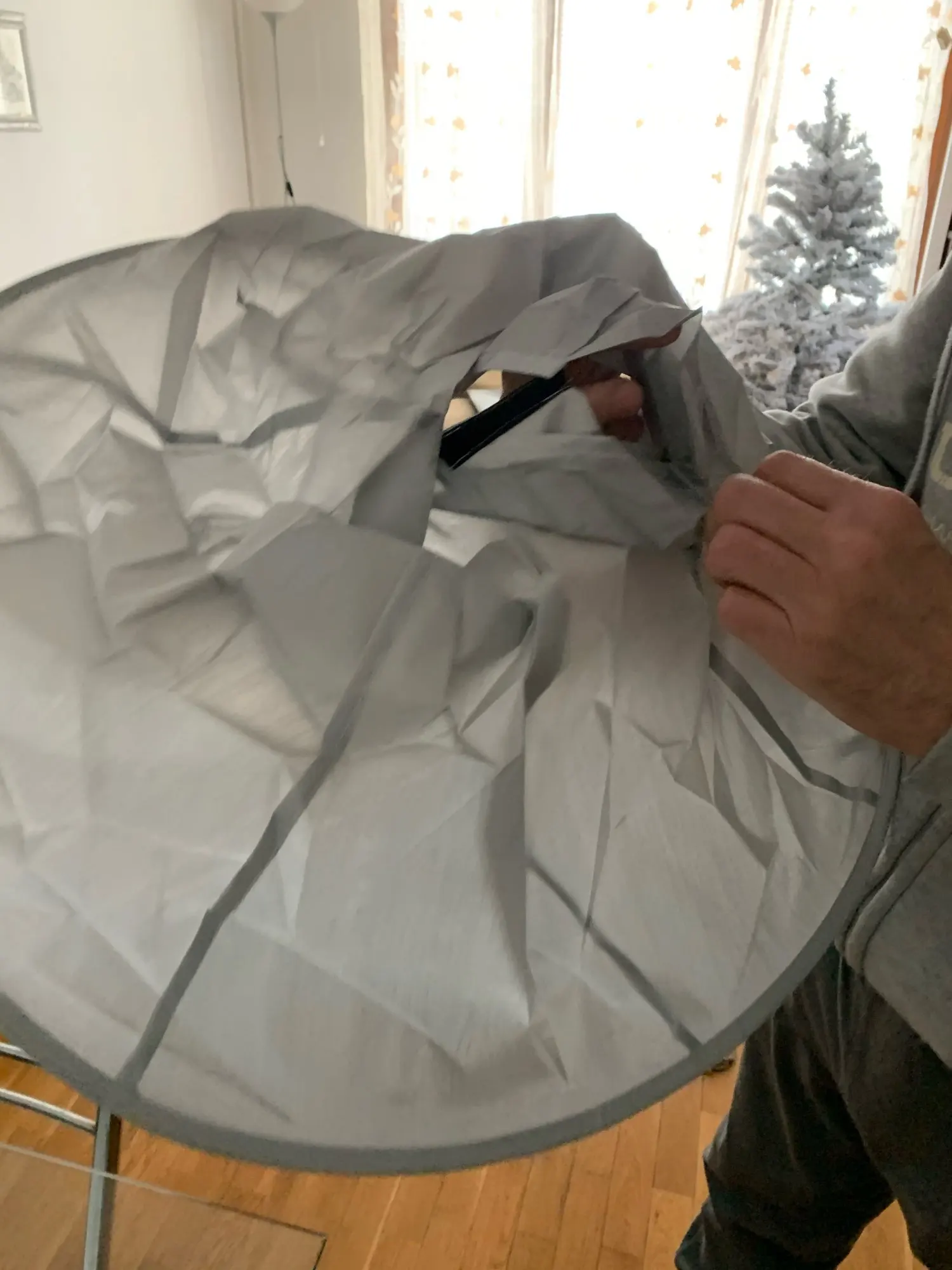 Все как в описании, осталось применить данное приспособление, во всяком случае меньше с пола убирать, главное, чтоб диаметр обруча не мешал мастеру (моей жене))))