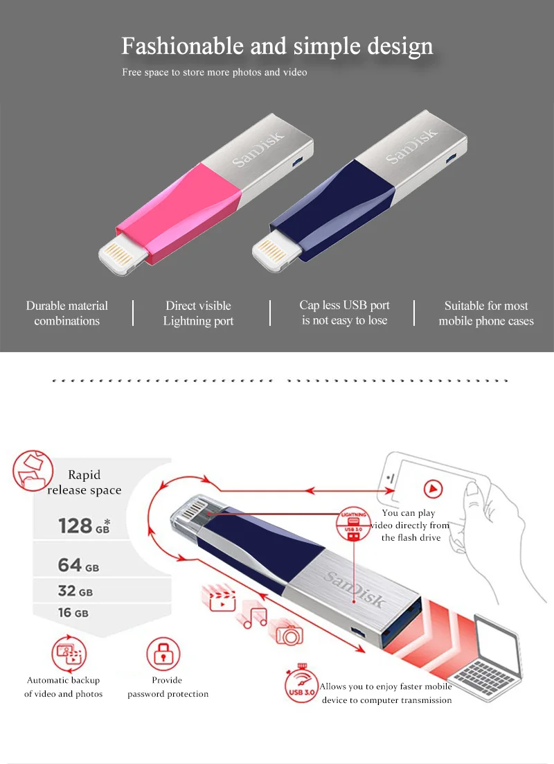 USB-флеш-накопитель Sandisk IXpand, металлический OTG USB 128, 3,0 ...