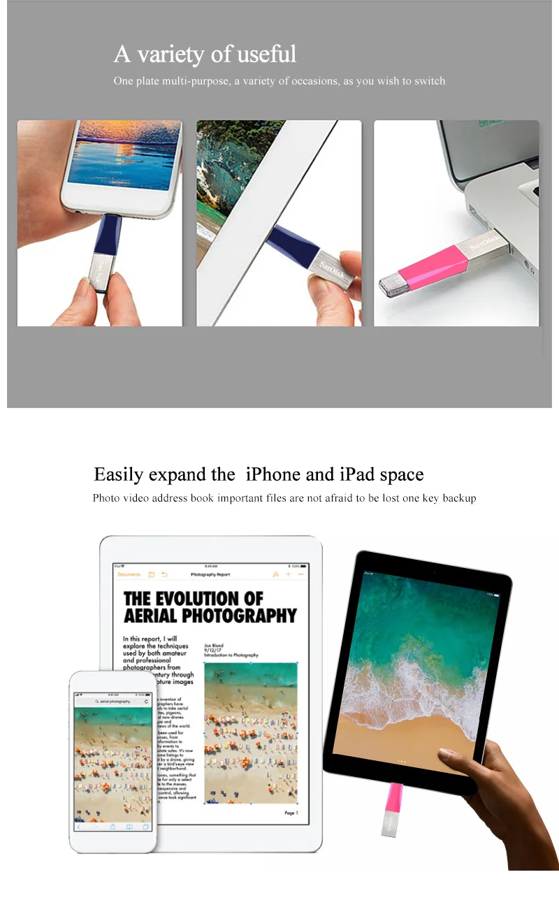 Мини-флеш-накопитель SanDisk iXpand, USB 3,0 OTG, USB-флеш-накопите...