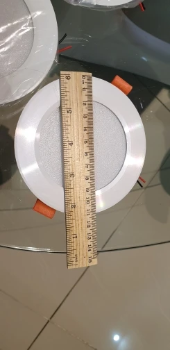 На комнату 9 кв.м поставили 6 светильников по 9 ватт, получилось достаточно ярко, белый нейтральный свет очень понравился. Светильники имеют тонкую заднюю платформу около 2.5-3см, отлично для натяжных потолков.