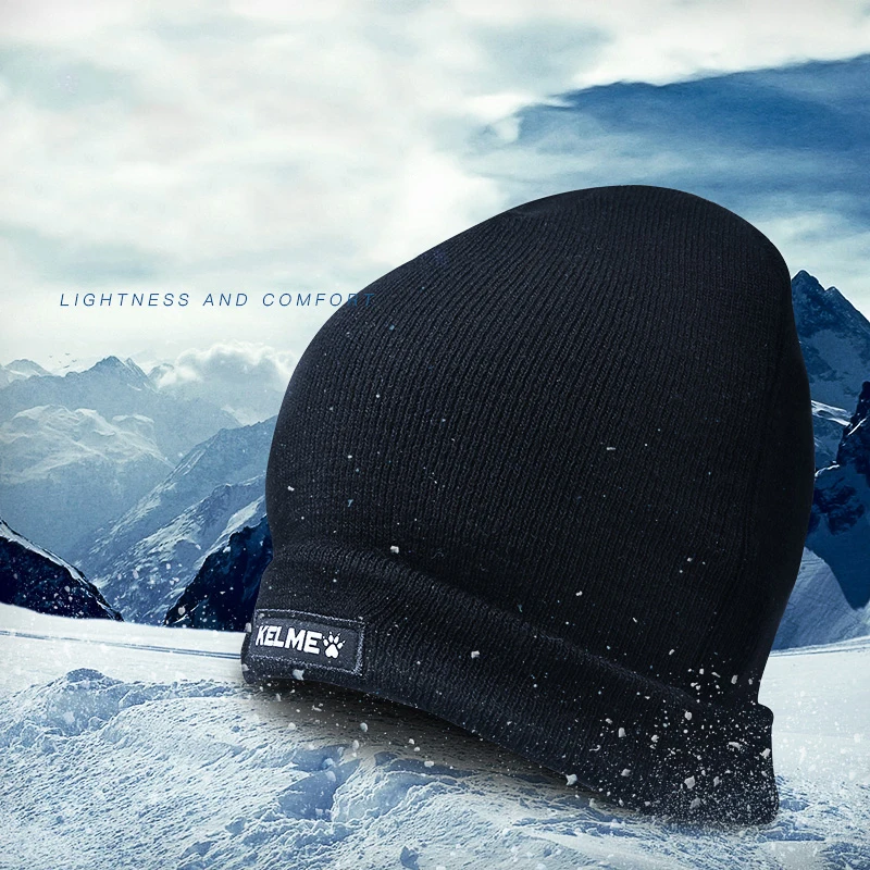 KELME вязаный берет унисекс теплая шапка осеньзима шапки для мужчин черная уличная Толстая Мягкая Повседневная шапка 9886506