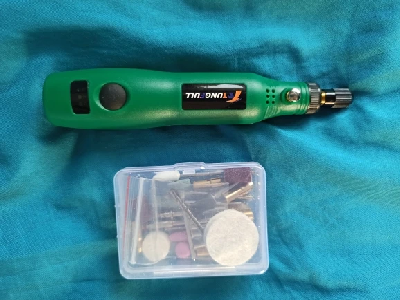 Милое устройство. Вы управляете ночью, не беспокоясь ни о ком. Также veru удобный для быстрой работы, такой как очистка клея, ржавчины, режущих материалов, заточки ножей, написание названий на материалах и т. д. это легкая, портативная и батарея версии dremel, которая поможет вам очень быстро. Батарея длится 40 минут