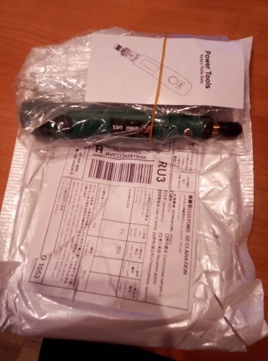 Брал самую дешёвую комплектацию, т.к. читал в отзывах, что расходники плохого качества. Пластик корпуса машинки на ощупь приятный, гладкий. Работает без видимого люфта, однако сильно чувствуется вибрация и довольно громко для такой малютки жужжит. Трек посылки отслеживается. Моторчик не особо тяговитый, останавливается на всех скоростях двумя пальцами, хотя такой миниатюрный дремель для вполне конкретных мелких задач
