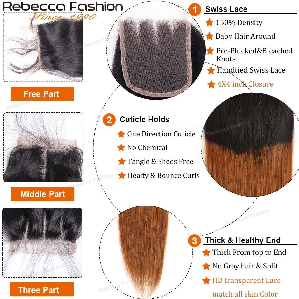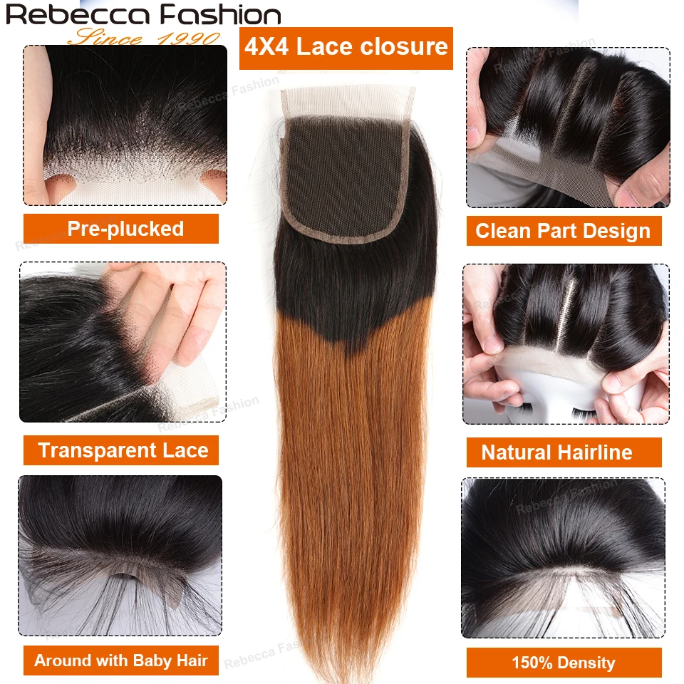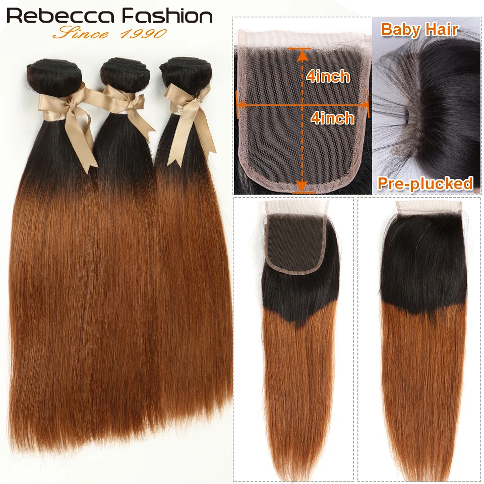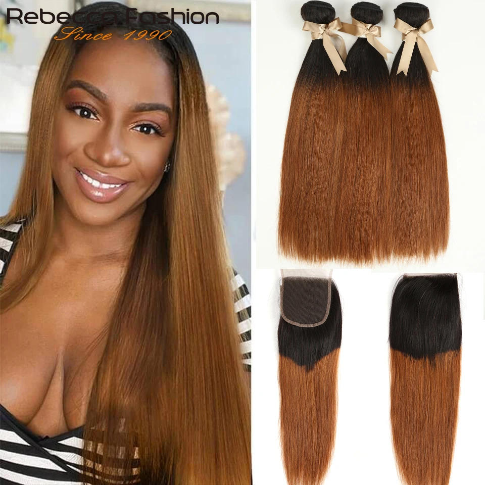 Пупряди Rebecca Ombre с застежкой, два тона 1B99J 1B27 1B30 цветов, бразильские прямые волосы, 3 пряди застежкой