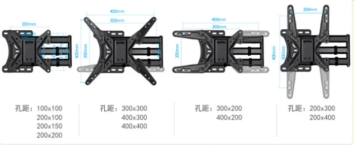 Наклонно-поворотный настенный кронштейн для ЖК, LED ТВ 32-60 дюймов, выдвижная стойка для телевизора, настенное крепление для ЖК ТВ с 6 поворотными рычагами, MAX VESA 400x400 мм