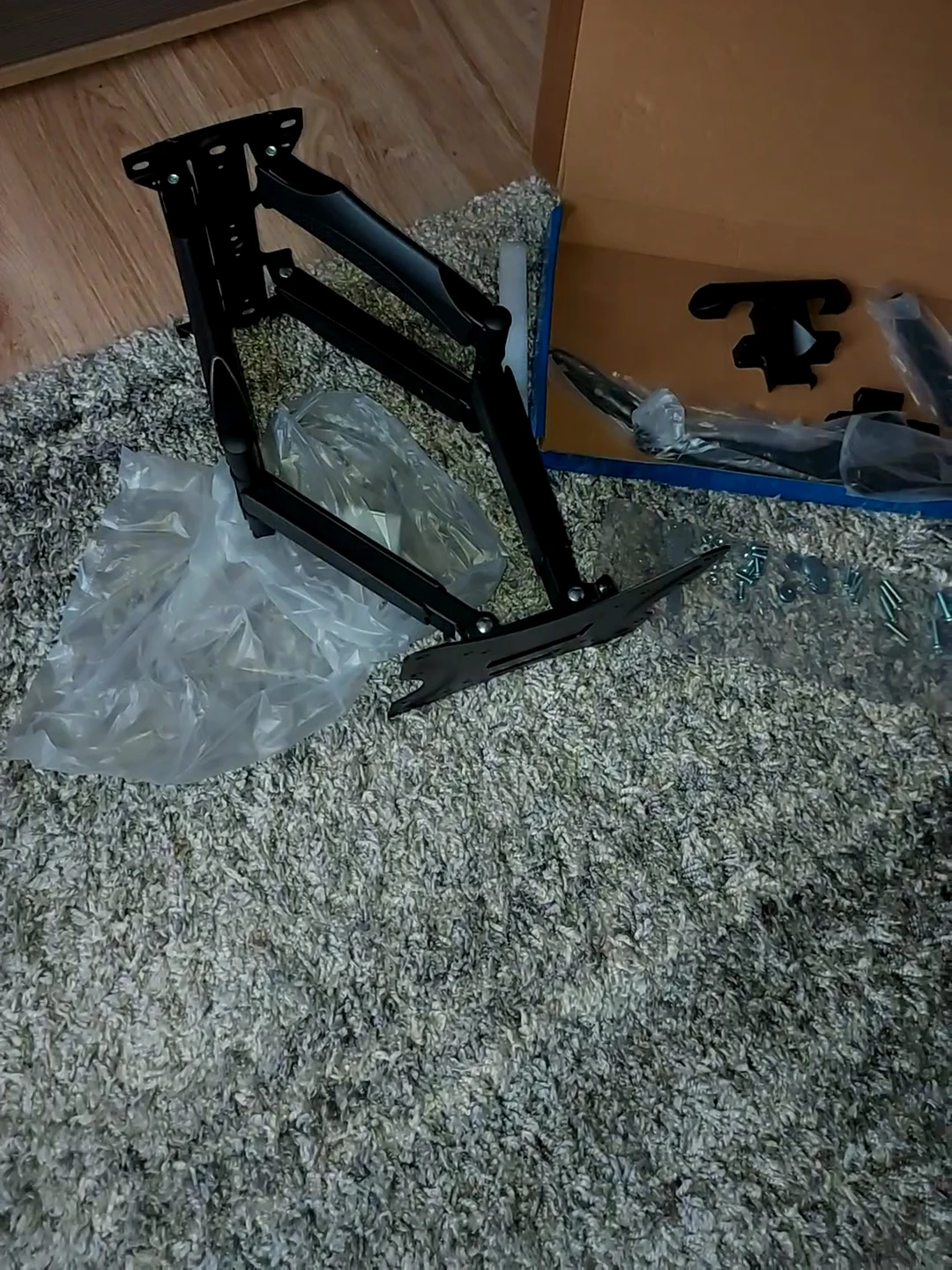 Пришло за 8 дней с доставкой до двери. Супер! Думал будет дольше. Пока ничего не вешал. но комплект достаточно увесистый. Материал по ощущением качественный. но похож на то, чтобы сломался под весом большого ТВ. Дополню отзыв, как установлю.