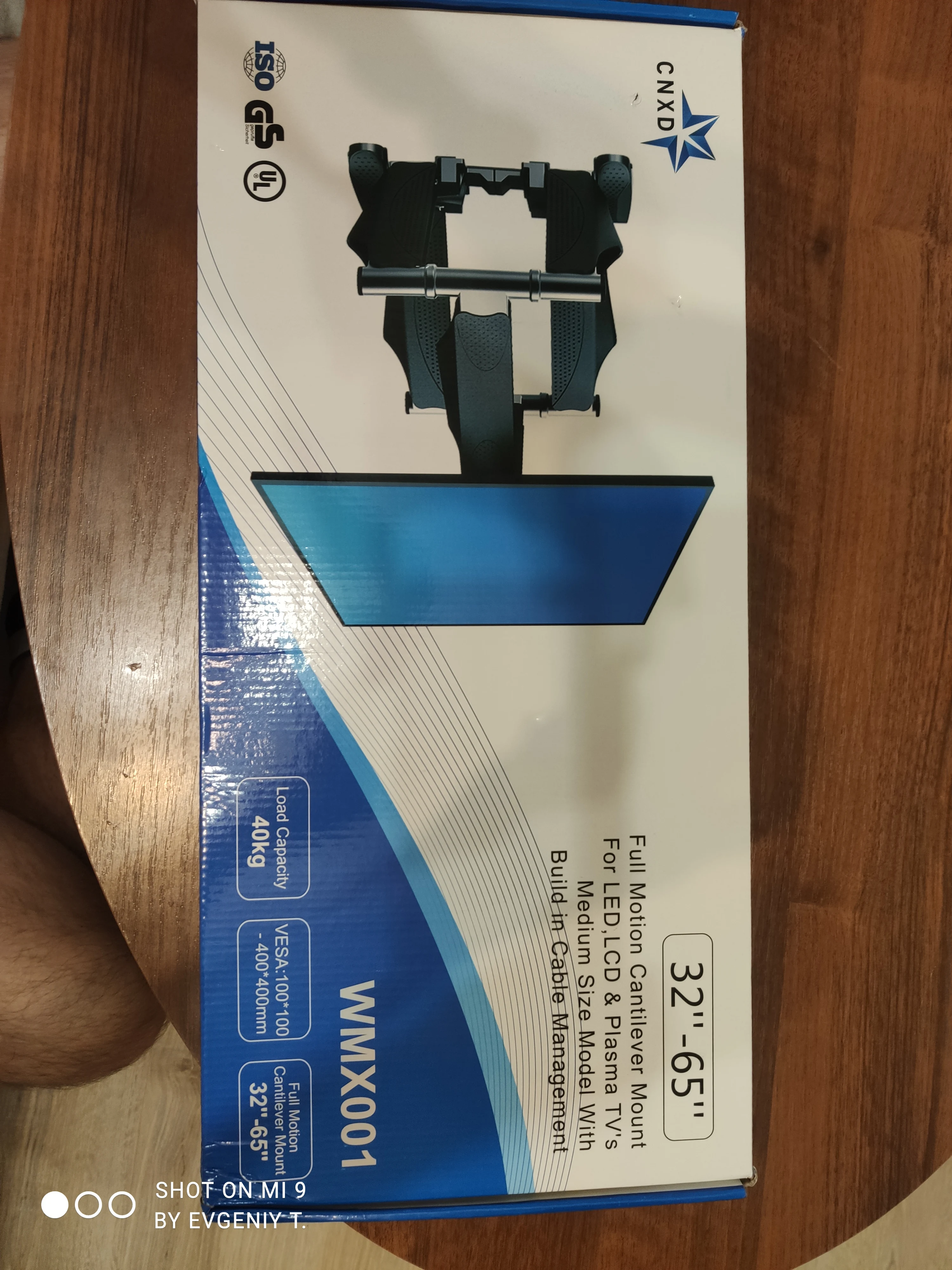 заказал 29.11, а 7.12 уже привез курьер в Самарскую область, кронштейн тяжёлый, на нем слона можно повесить, и это как обычно у китайцев на картинке выглядит все большим, а в натуре мелкое все но тут вообще всё наоборот, сам кронштейн весит около 5 кг. Я очень доволен, ибо запас надёжности не помешает, особенно для дорогого телевизора. Думаю с монтажом проблем не будет, весь крепеж в комплекте, по нагрузке никаких сомнений не вызывает. Рекомендую и товар и продавца.