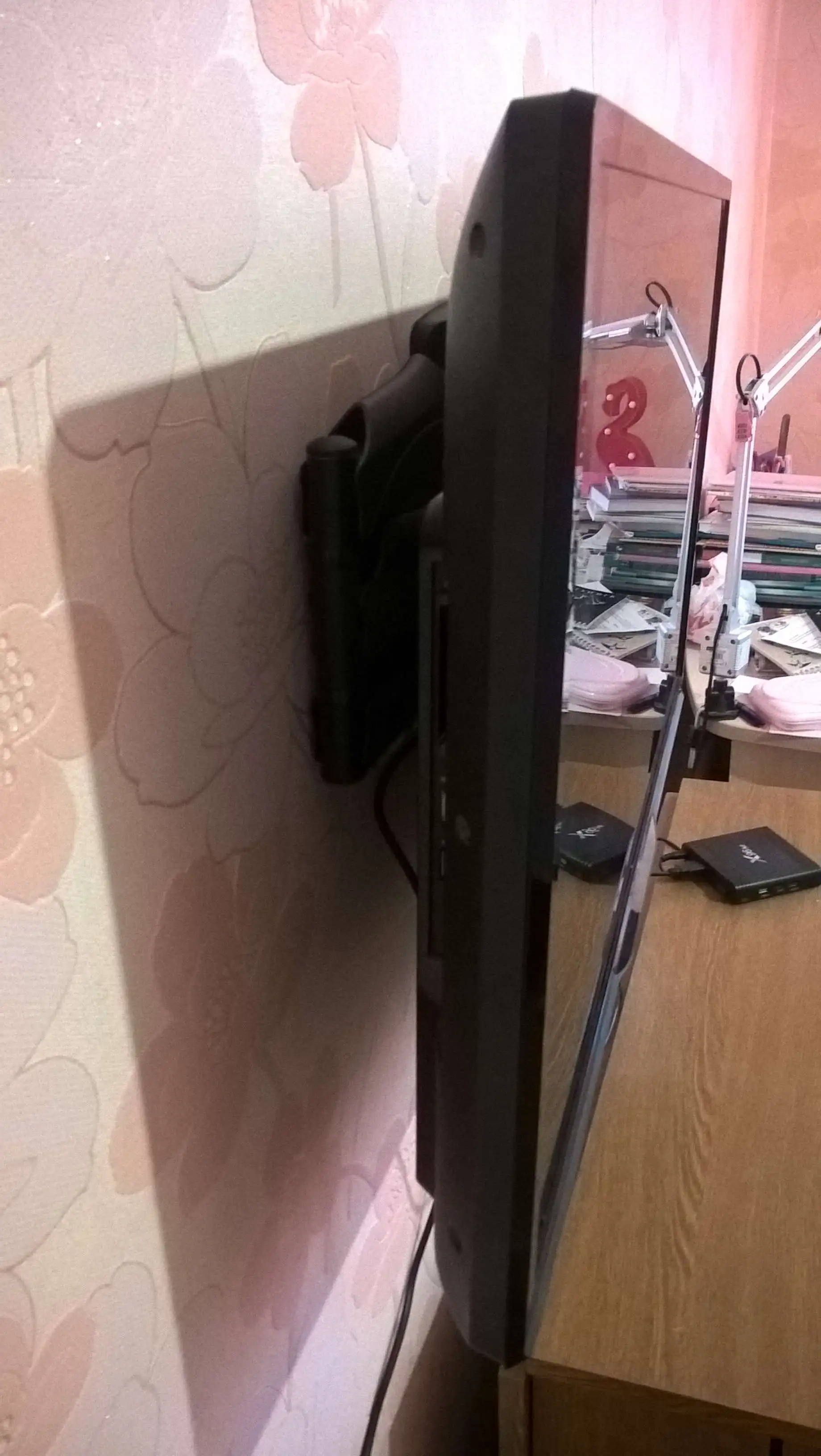 Кронштейн пришёл быстро. Немного закрывает разъёмы usb на телевизоре, но это не критично, подлезть легко можно. В наших магазинах такой кронштейн стоит 6 т. Товаром довольны, рекомендуем)