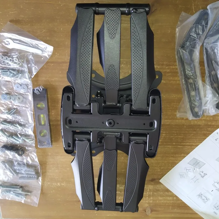 Отличный кронштейн мне очень понравился. Крепкий и с пластиковыми накладками смотрится обалденно. На телевизор 65" сел как надо! Не сразу разобрался как подобрать ножки для крепления к телевизору, но вариант был подобран. Доставка курьером до двери в Москву за 12 дней. Рекомендую товар и продавца. Фото моей вариации ножек в фото.