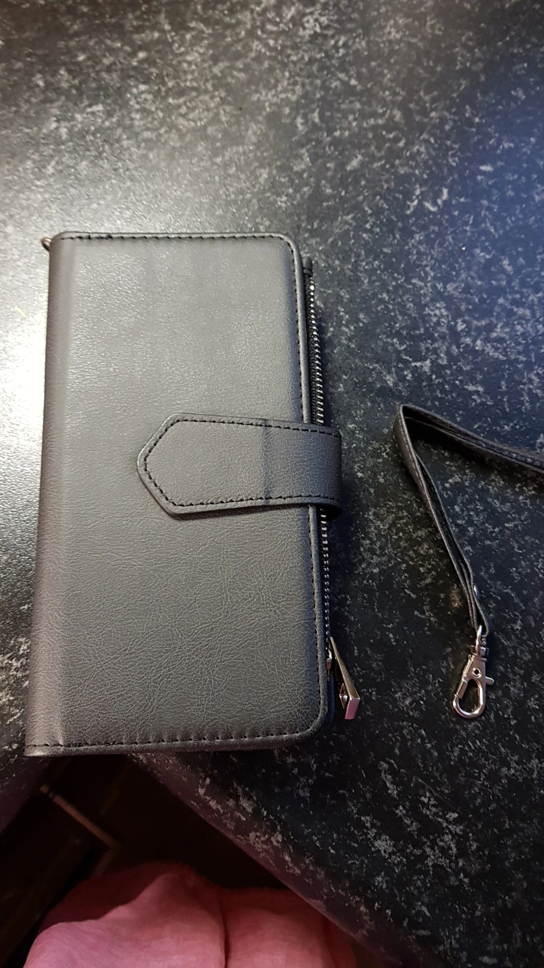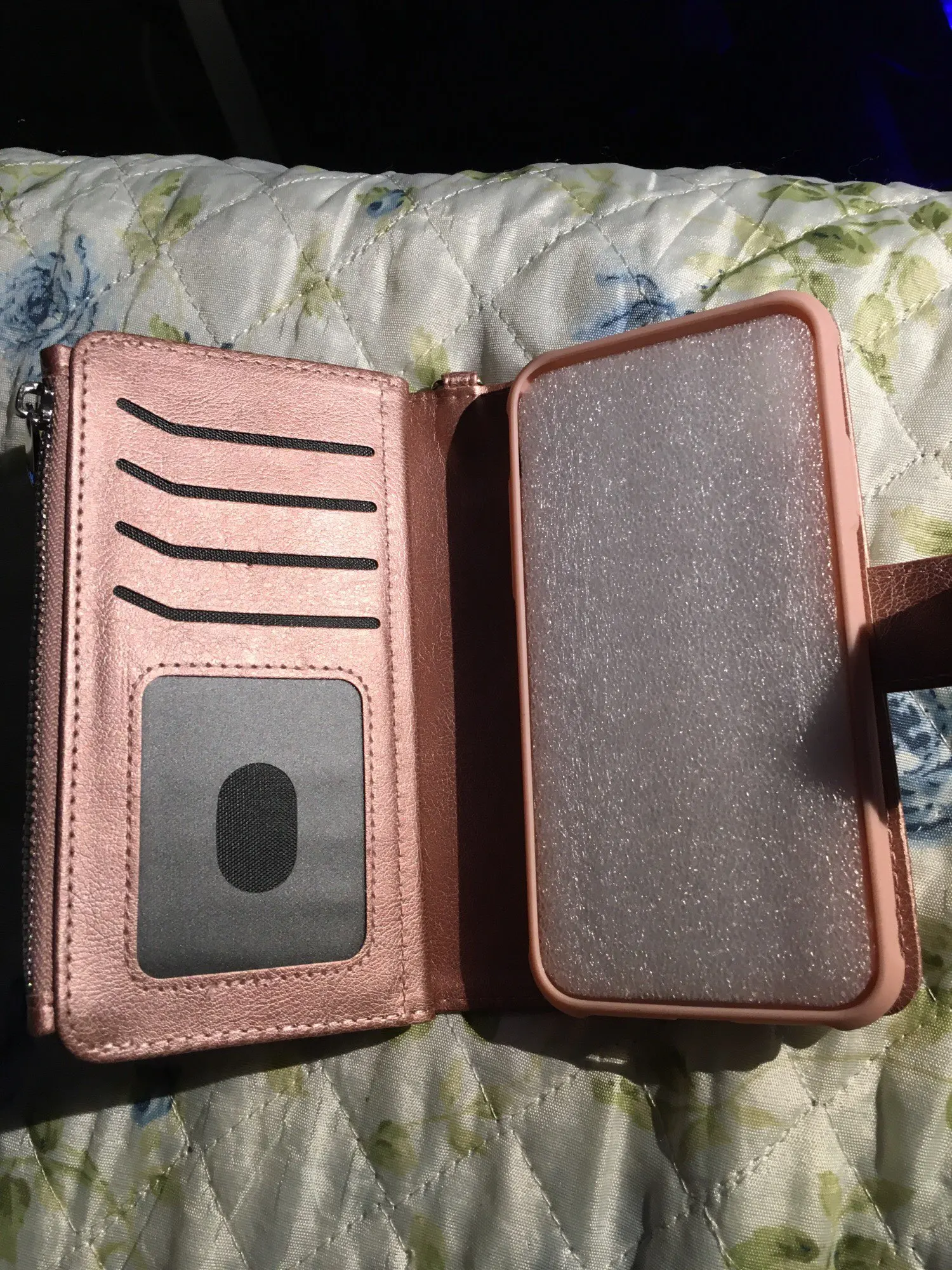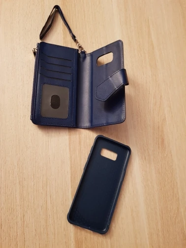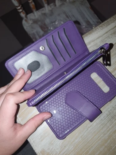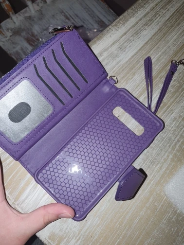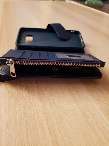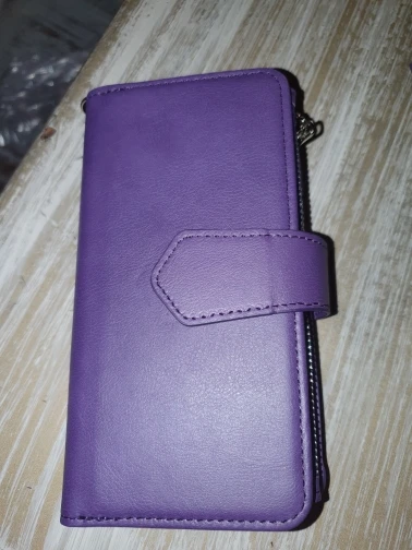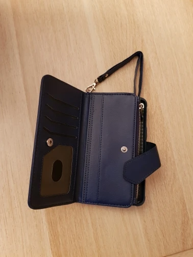 Это так же, как на картинке. Вы можете отделить чехол от кошелька, кошелек очень хороший. Единственное, что меня пугает, что эта молния так близко к экрану (я бы хотел, чтобы вы поместили защитное стекло на мобильный телефон).8 мест для карт, один для банкнот (но маленький). И не так много монет входят. Я приду через неделю. Стоит своих денег.