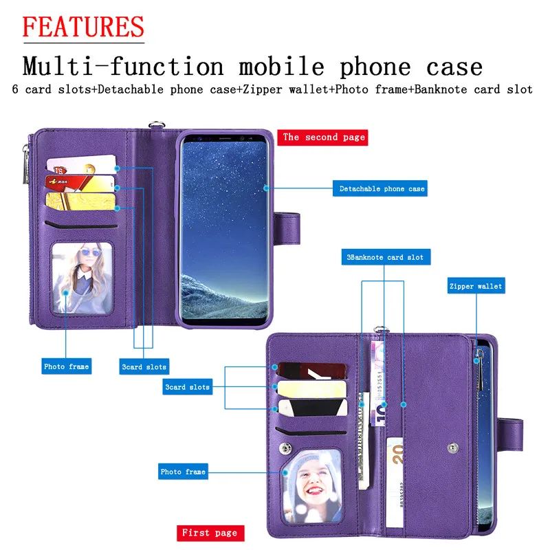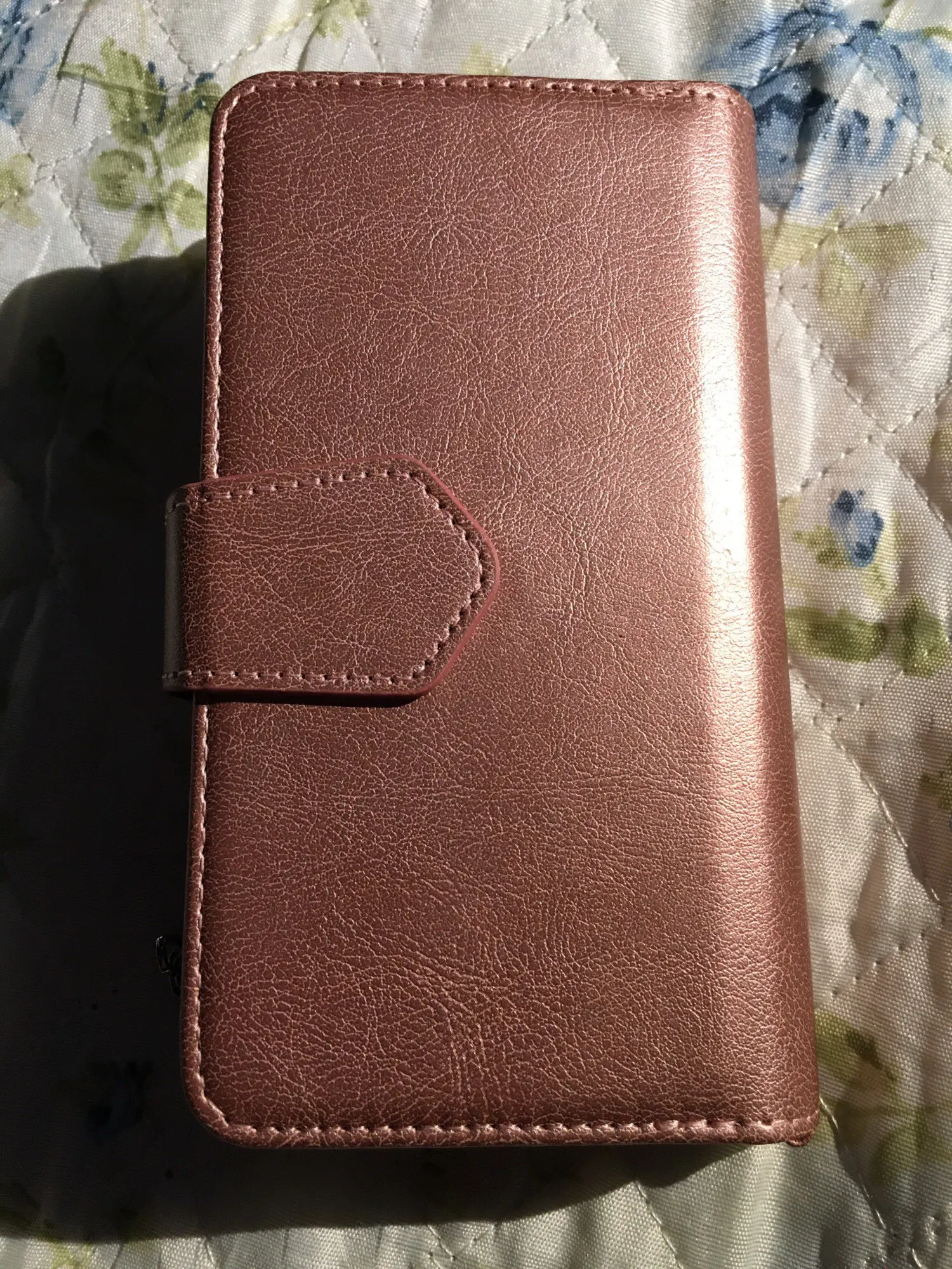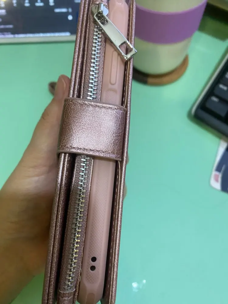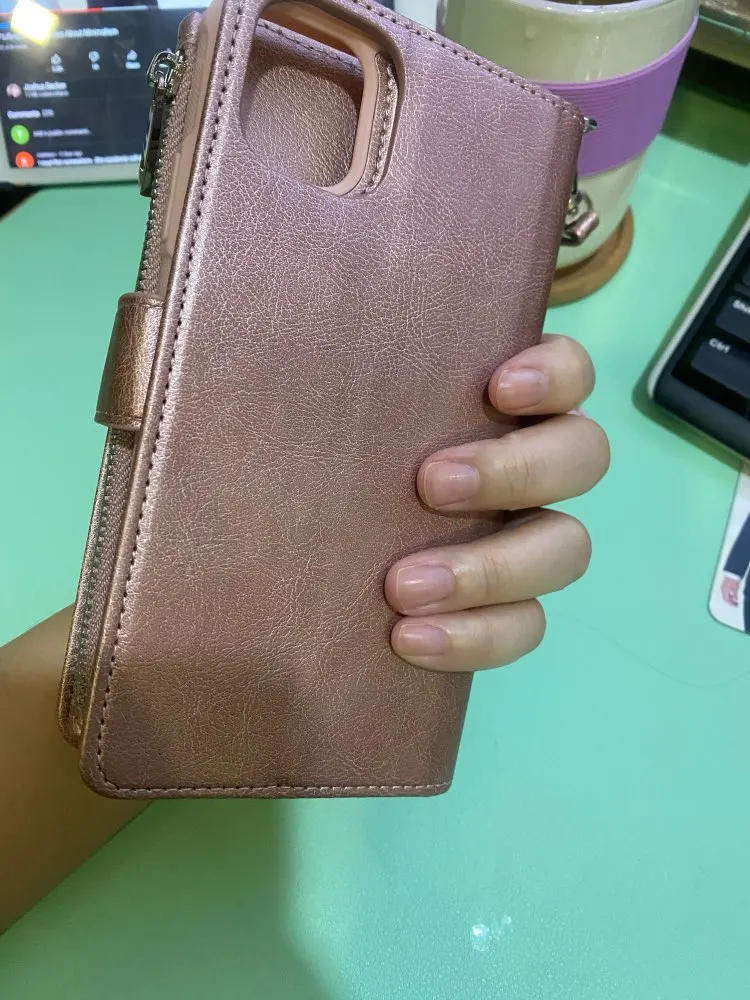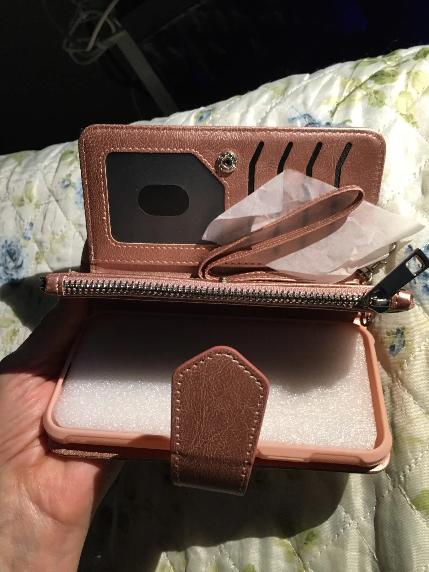 Это так же, как на картинке. Вы можете отделить чехол от кошелька, кошелек очень хороший. Единственное, что меня пугает, что эта молния так близко к экрану (я бы хотел, чтобы вы поместили защитное стекло на мобильный телефон).8 мест для карт, один для банкнот (но маленький). И не так много монет входят. Я приду через неделю. Стоит своих денег.