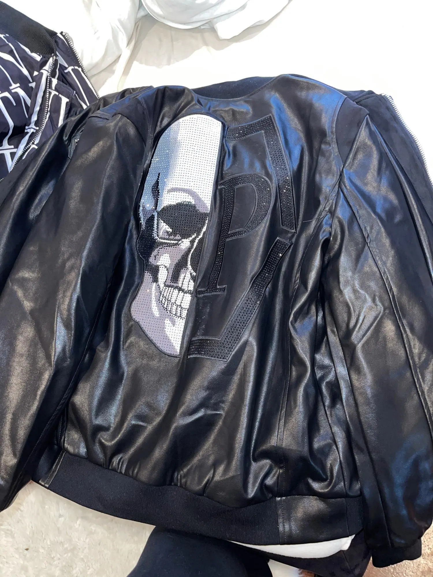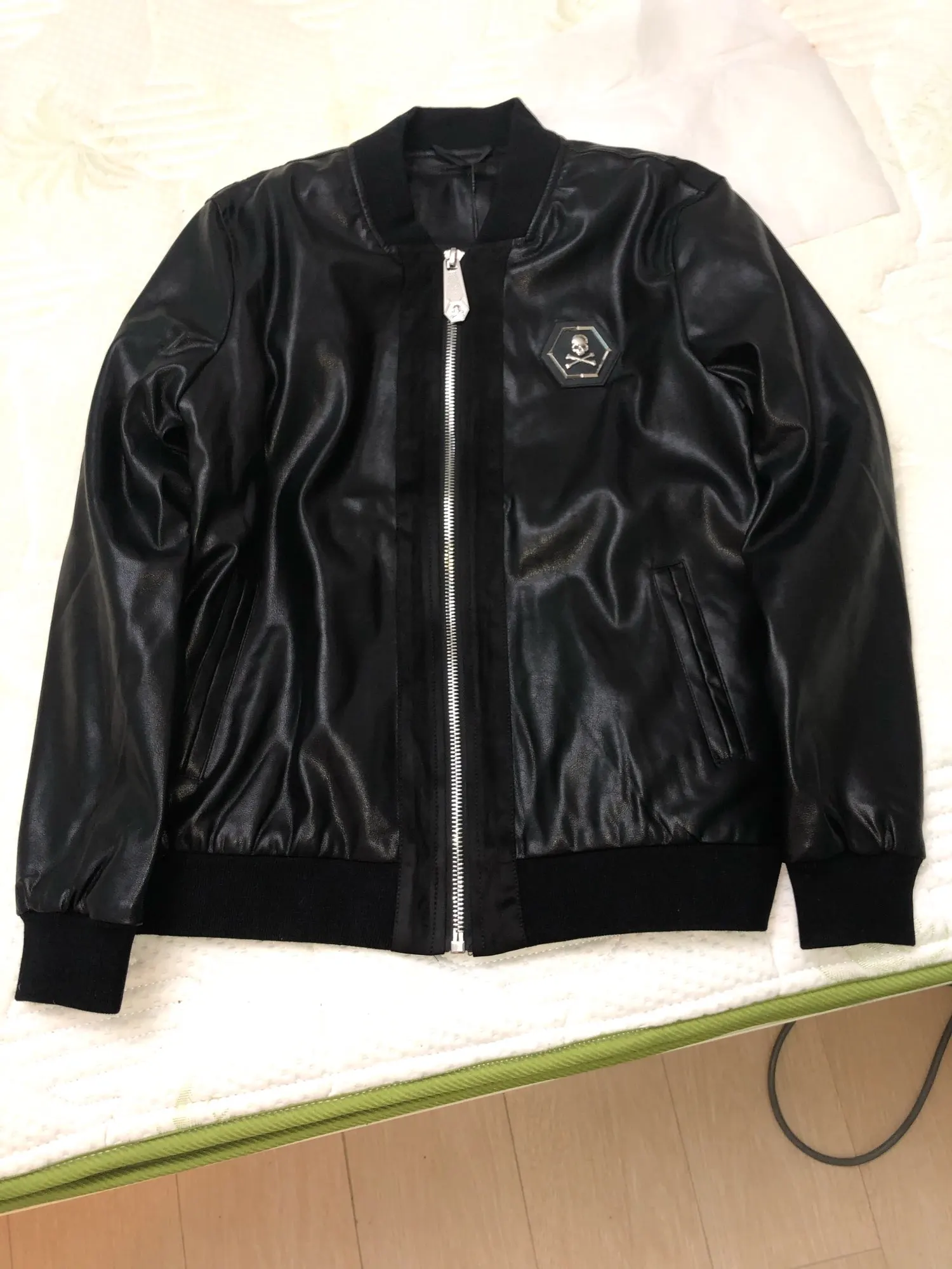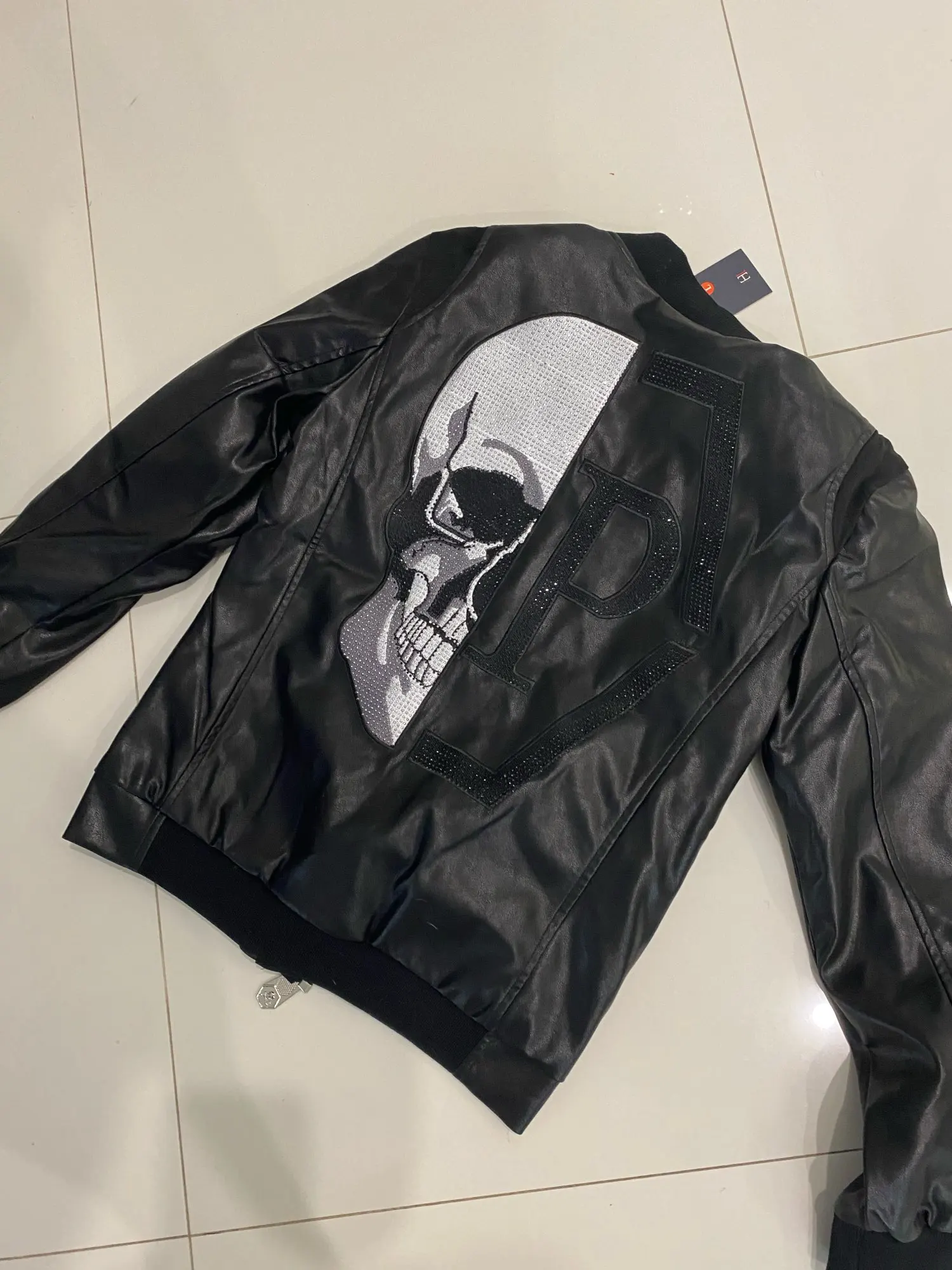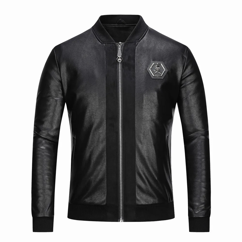 Мужская мотоциклетная куртка Стразы, черная куртка из искусственной кожи с воротником-стойкой и рукавами в рубчик, 2021