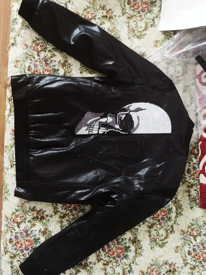 Супер качество материала куртка идеальна, кристаллы хорошо держатся и имеют превосходный блеск. Я рекомендую этого отличного продавца, я без колебаний рекомендую следующий. Я даже получил небольшой подарок, который очень хороший