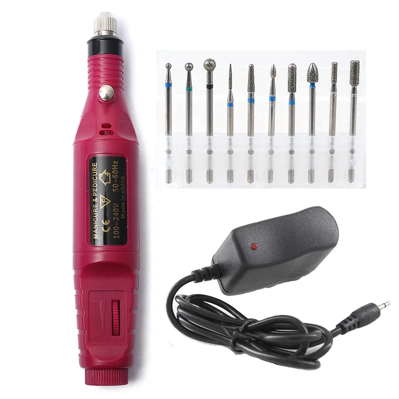 1 Набор, профессиональный Электрический Маникюрный аппарат, 10 бит, фрезы для кутикулы, фрезы для дизайна ногтей, 2000 обмин, фрезы для педикюра, аппараты, новый комплект