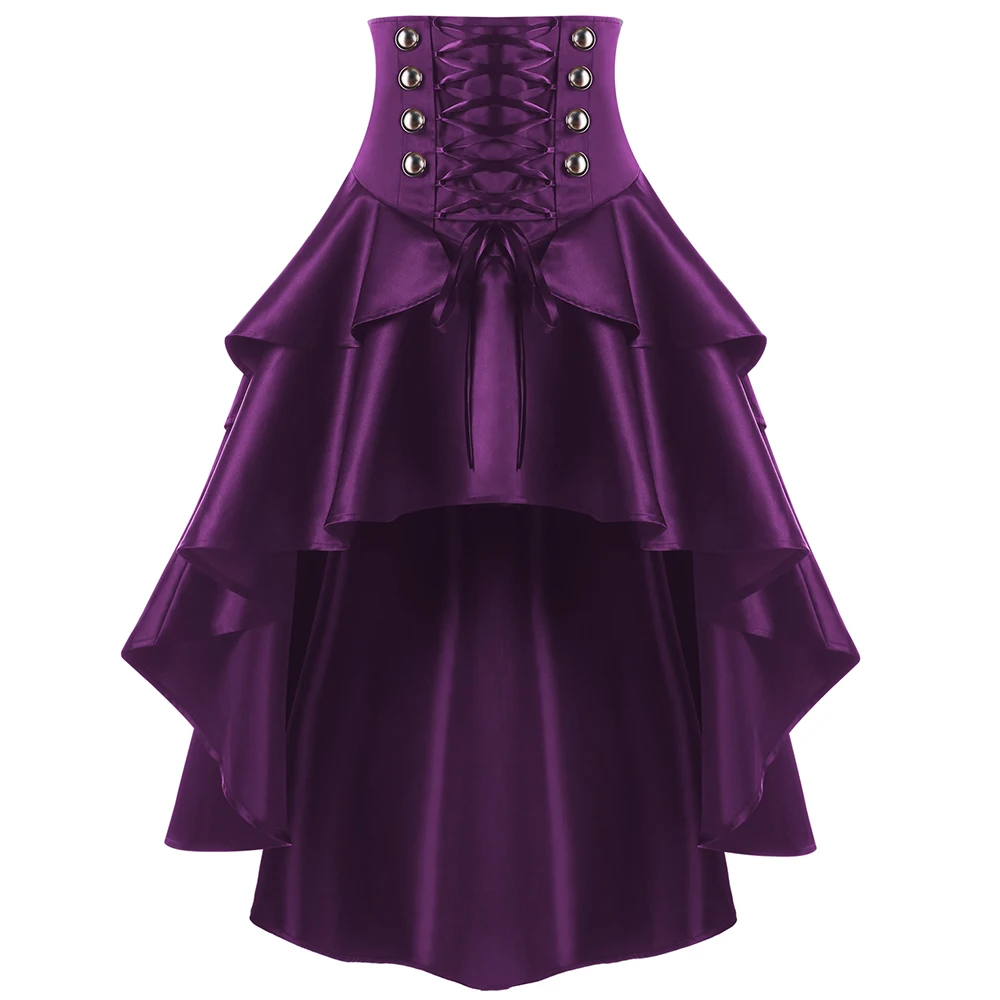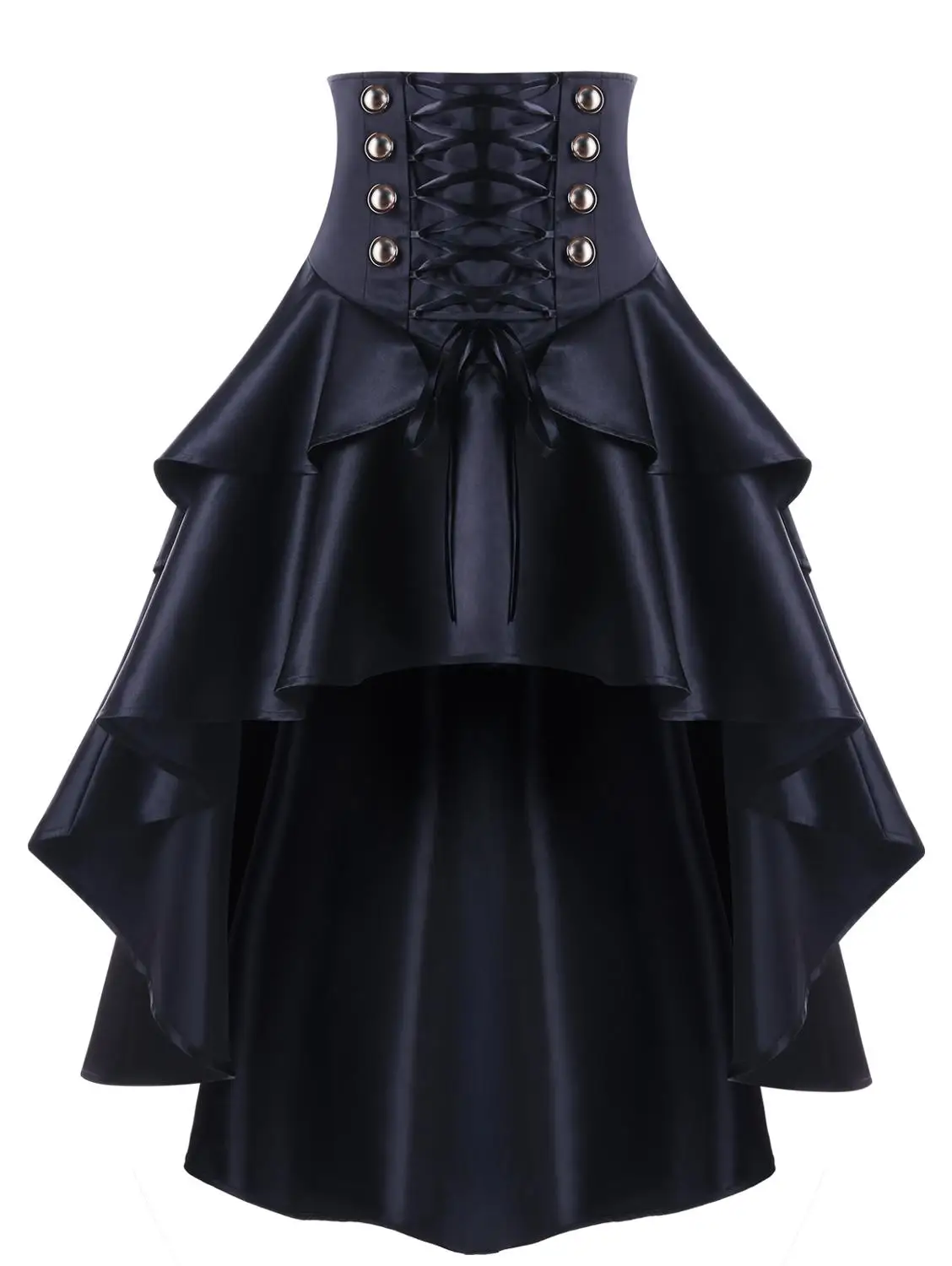 Кэнэнси женские готические Стиль Кнопка панк-корсет нарядные юбки с кружевом для маленьких девочек; Талия на шнуровке; Юбки в складку качели нерегулярные Высокий Низкий Feminino юбки