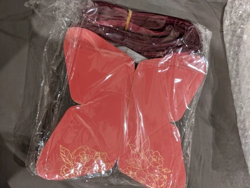 well packaged and shipping was surprisingly fast compared to other orders. it's more of a red than a maroon or burgundy as seen in the photos, but it's exactly what I wanted. comes with tags, ribbon and even a little threader to help put the ribbon through more easily.