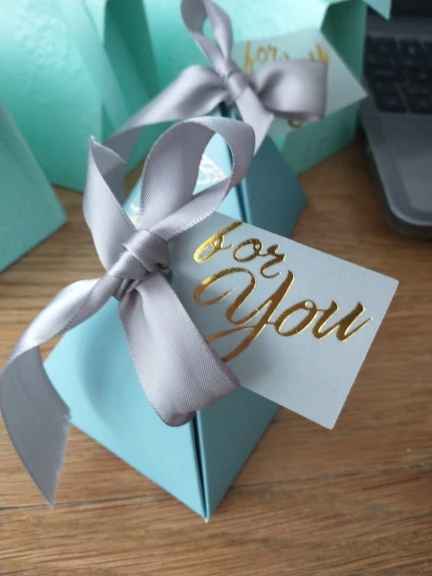 Коробки очень быстро получены. Они замечательные. Я очень доволен своей покупкой. Labeltjes, которые я чувствую менее красивыми (личный вкус), но я не буду использовать. Коробка + Лента идеальны.