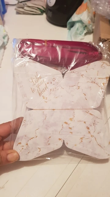 Коробочки прекрасные, размер отличный, качественный и плотный материал, ленточки широкие, красивые, переливаются и отличный цвет. Пришли немного помятые бирки и не хватало 2 коробки и 3 бирки, продавец вернул 1,5$. А так все как на фото