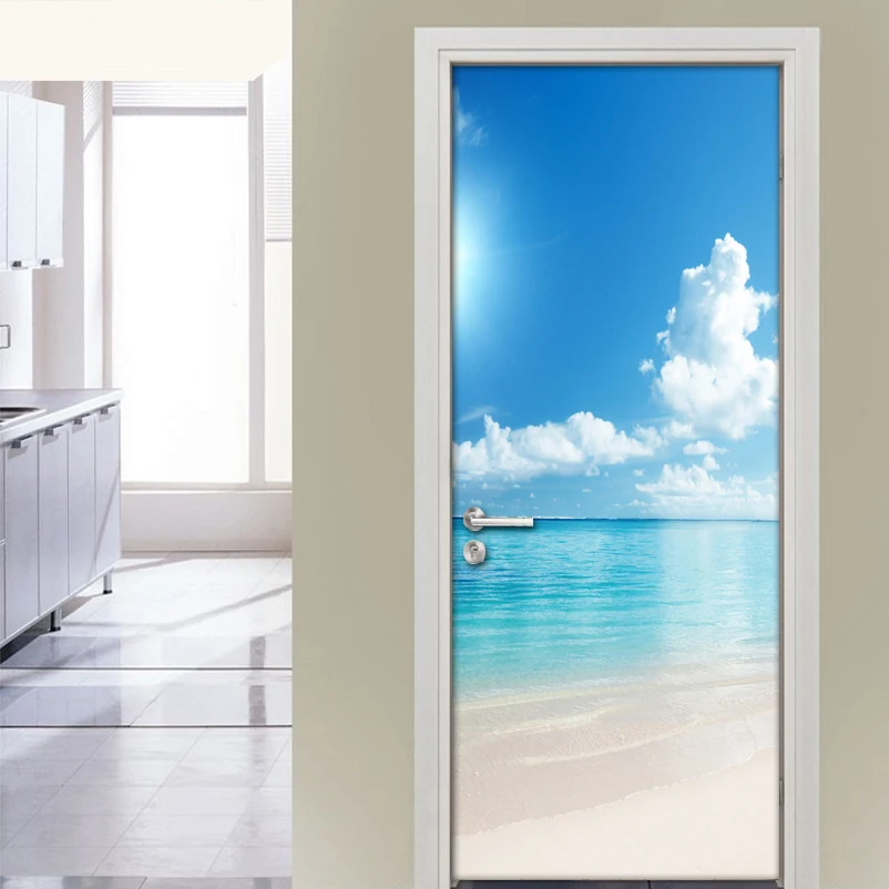 Синее небо, белые облака, песчаный пляж, вид на море, дверь, наклейка, Настенная бумага, спальня, гостиная, самоклеящиеся настенные наклейки, украшение для дома