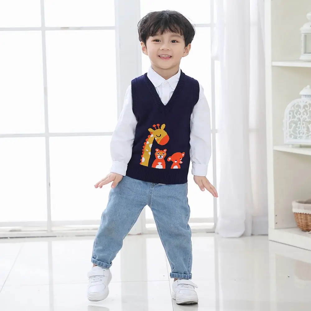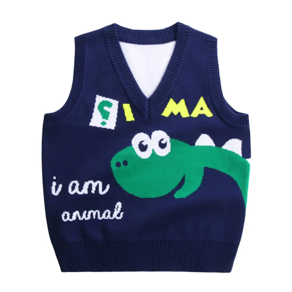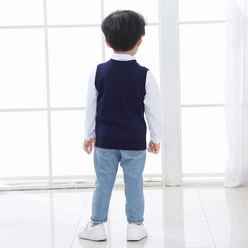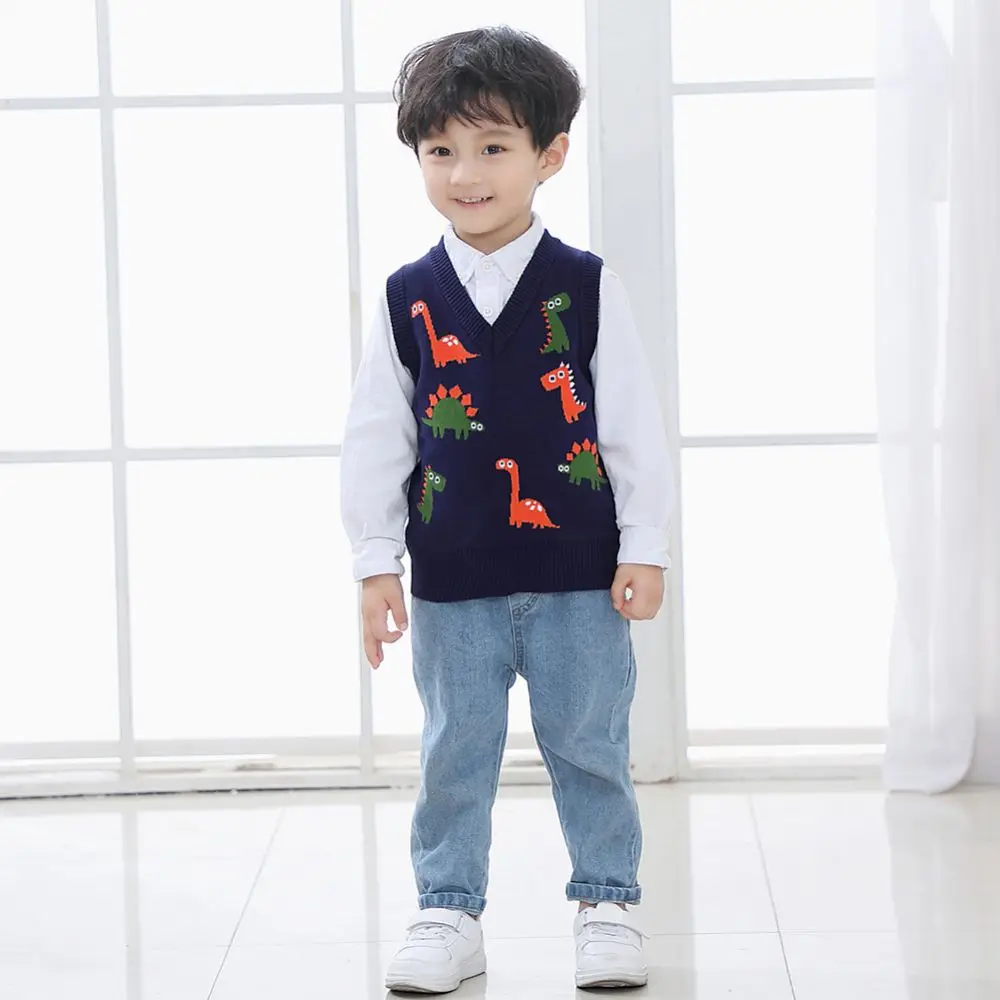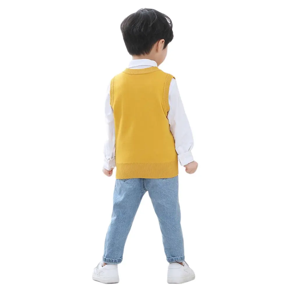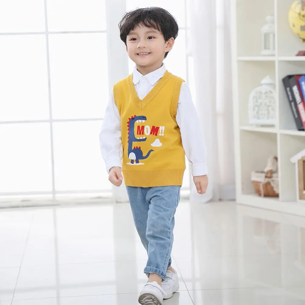 Осенне-весенняя повседневная детская верхняя одежда для мальчиков и девочек, свитер, жилет с рисунком ромбиками и V-образным вырезом, пуловер без рукавов, вязаный школьный жилет, женский
