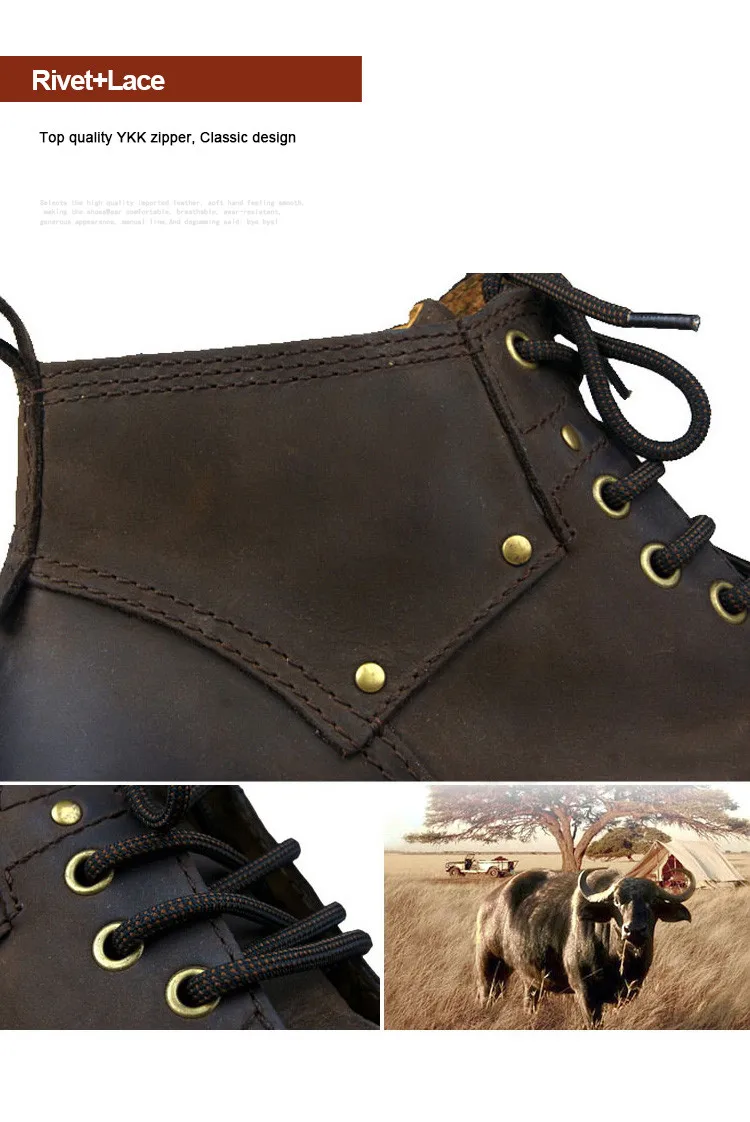 Ботинки мужские зимние из натуральной коровьей кожи, на меху, со шнуровкой