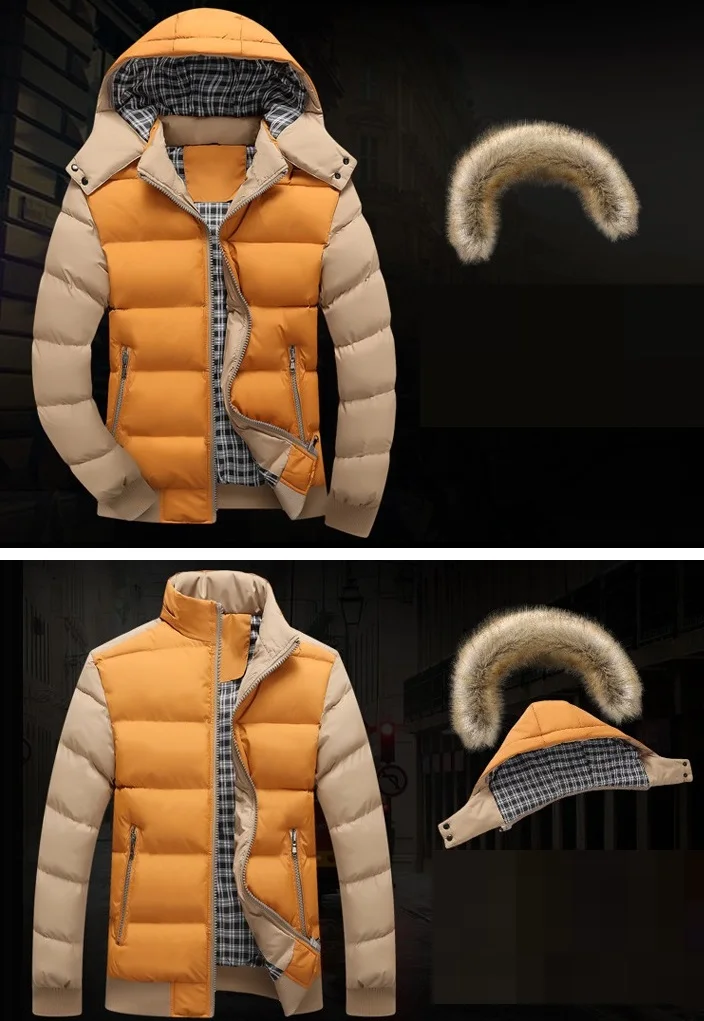 Мужской теплый пуховик с меховым капюшоном, 9 цветов, размеры до 4XL
