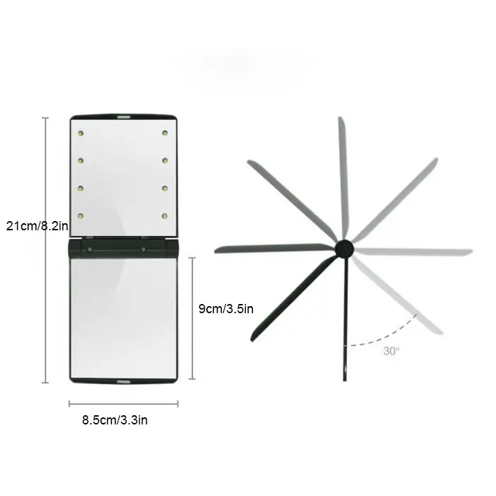 Портативное светодиодное зеркало с подсветкой, компактные карманные зеркала для макияжа, косметическое складное LED зеркало с подсветкой