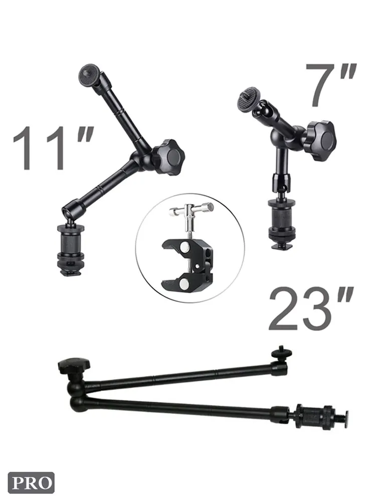 2. Это профессиональный 7 "/11" артикуляционный магический рычаг и супер зажим, идеально подходящий для Светодиодный светильник, ЖК-монитор или вспышка светильник и т. Д. На камерах.