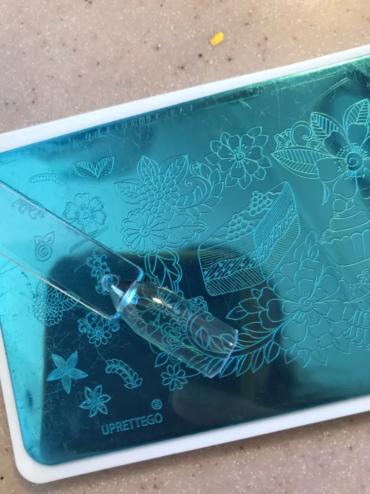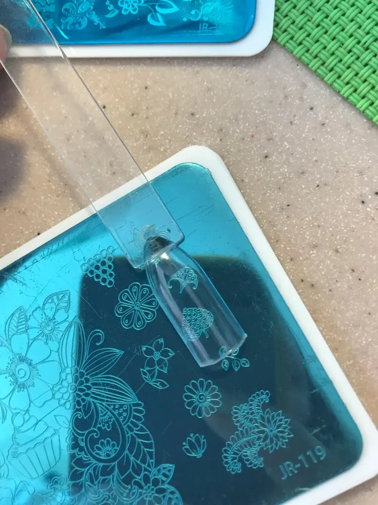 Понравилась пластина, минусов не вижу. Она без подложки, но края не острые и меня устраивает. Единственное—на короткую длину ногтей, длинные придётся покрывать дважды. Все отпечатывала лаками для стемпинга. На фото приложила свой палец для понимания размера. Во Флориду пришло быстро, недели через 3.