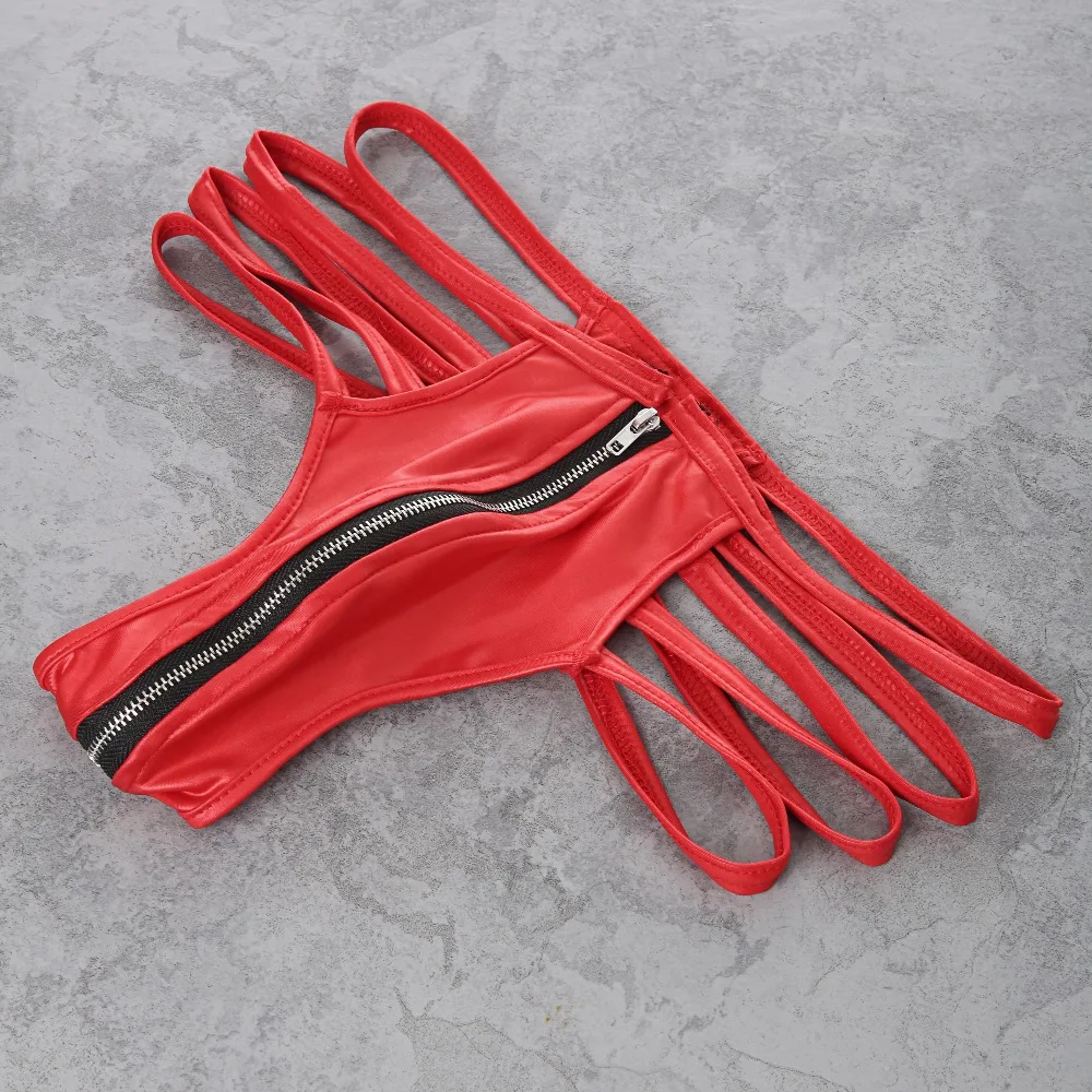Мужское кожаное нижнее белье на молнии, с низкой посадкой