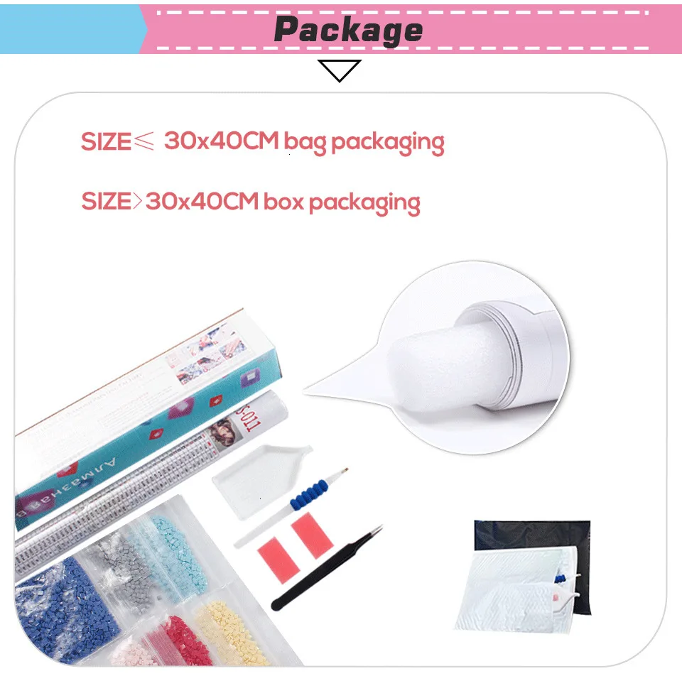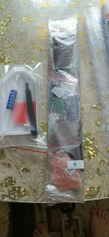 посылка шла чуть больше месяца,картина была намотана на валик,всего хватает,стразы кавадратные, продавец положил очень хороший пинцет