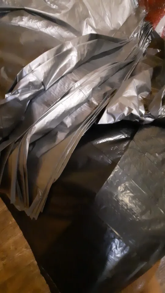 Плёнка соответствует описанию. С одной стороны чёрная, с другой серебристая. Очень тонкая. Думаю, что весной пригодится. Насчёт многоразовости сомневаюсь. Очень тонкая.