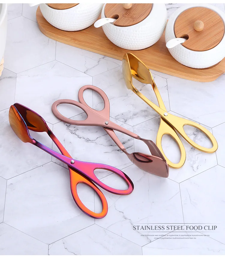 12 шт. Нержавеющаясталь золото Еда зажим Кухня посуда стол хлеб пицца барбекю торт зажим для выпечки щипцы товары для дома, кухни Кухня расходные материалы