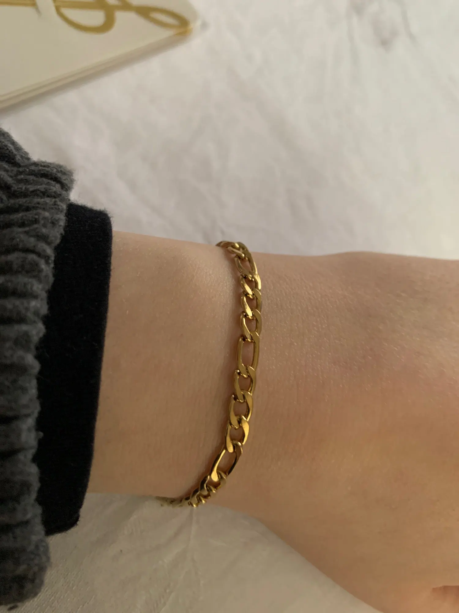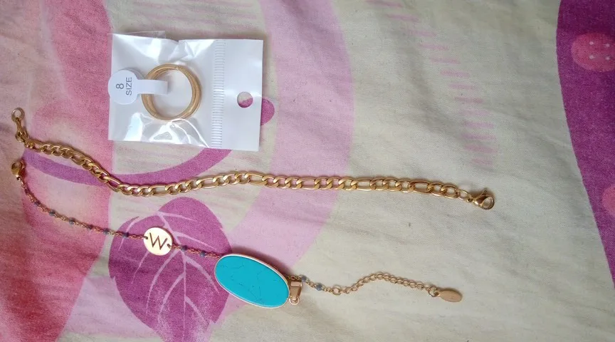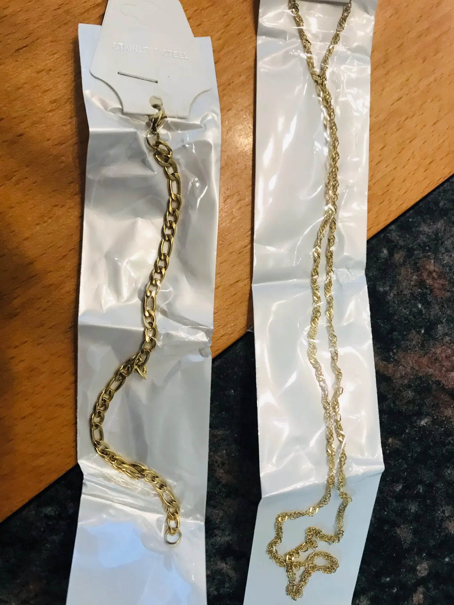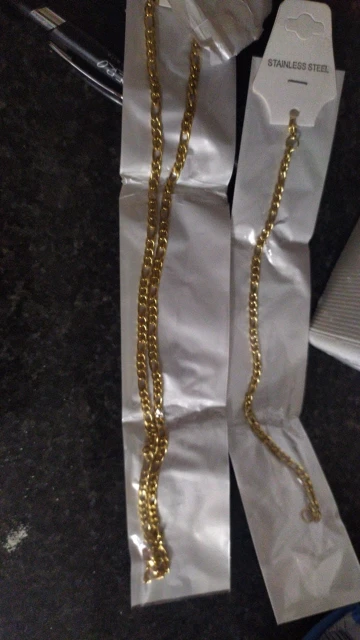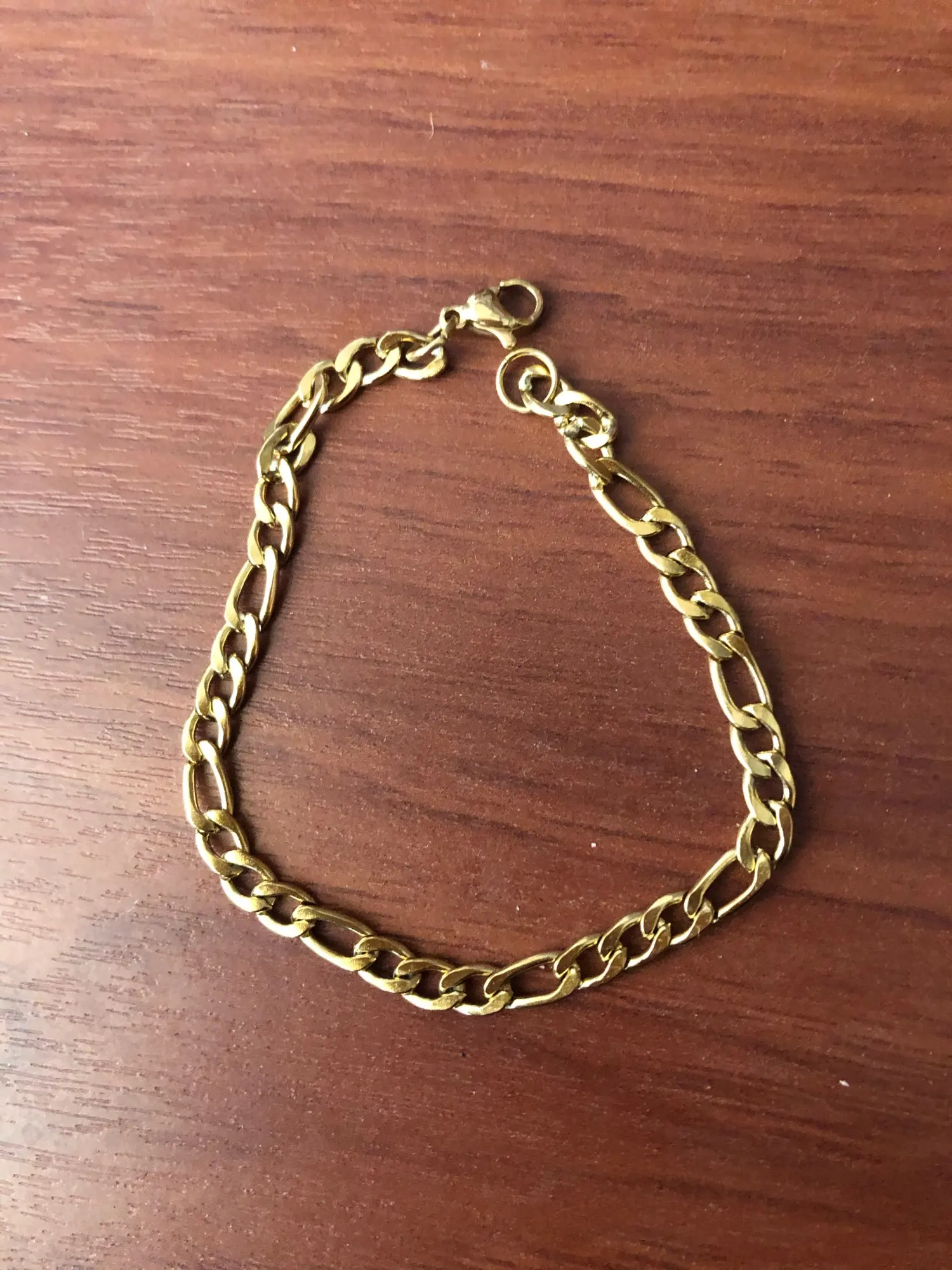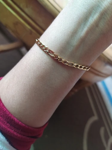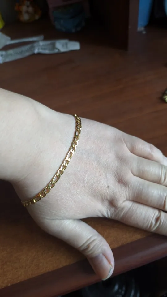 браслет пришел очень быстро в одном пакете с другими посылками, качество хорошее, заказала самый короткий, но все равно пришлось убрать пару звеньев. Совершенно не нравится цвет, для сравнения приложила фото с настоящим золотом. браслет более зеленый какой-то. не знаю, буду носить ли...