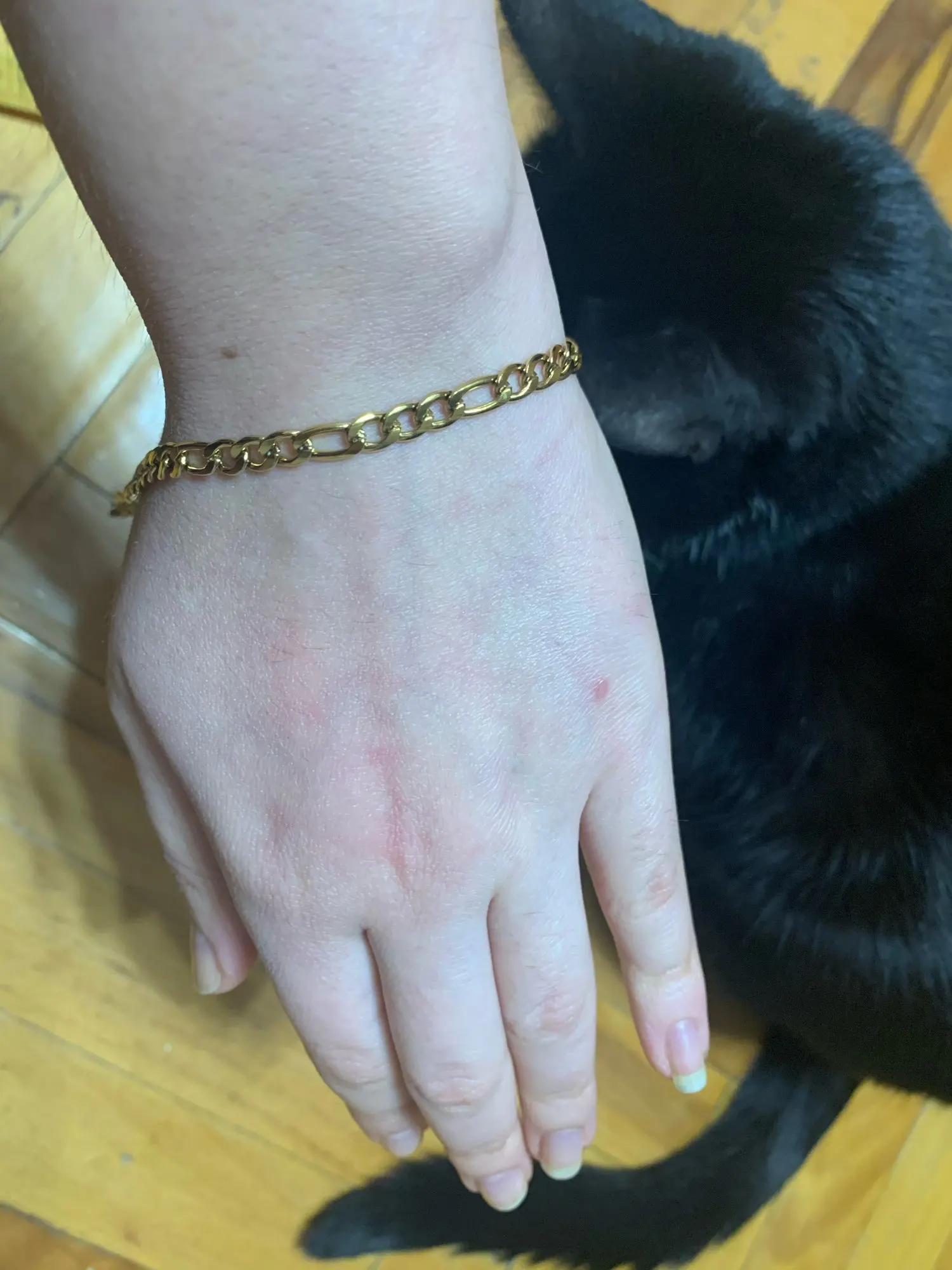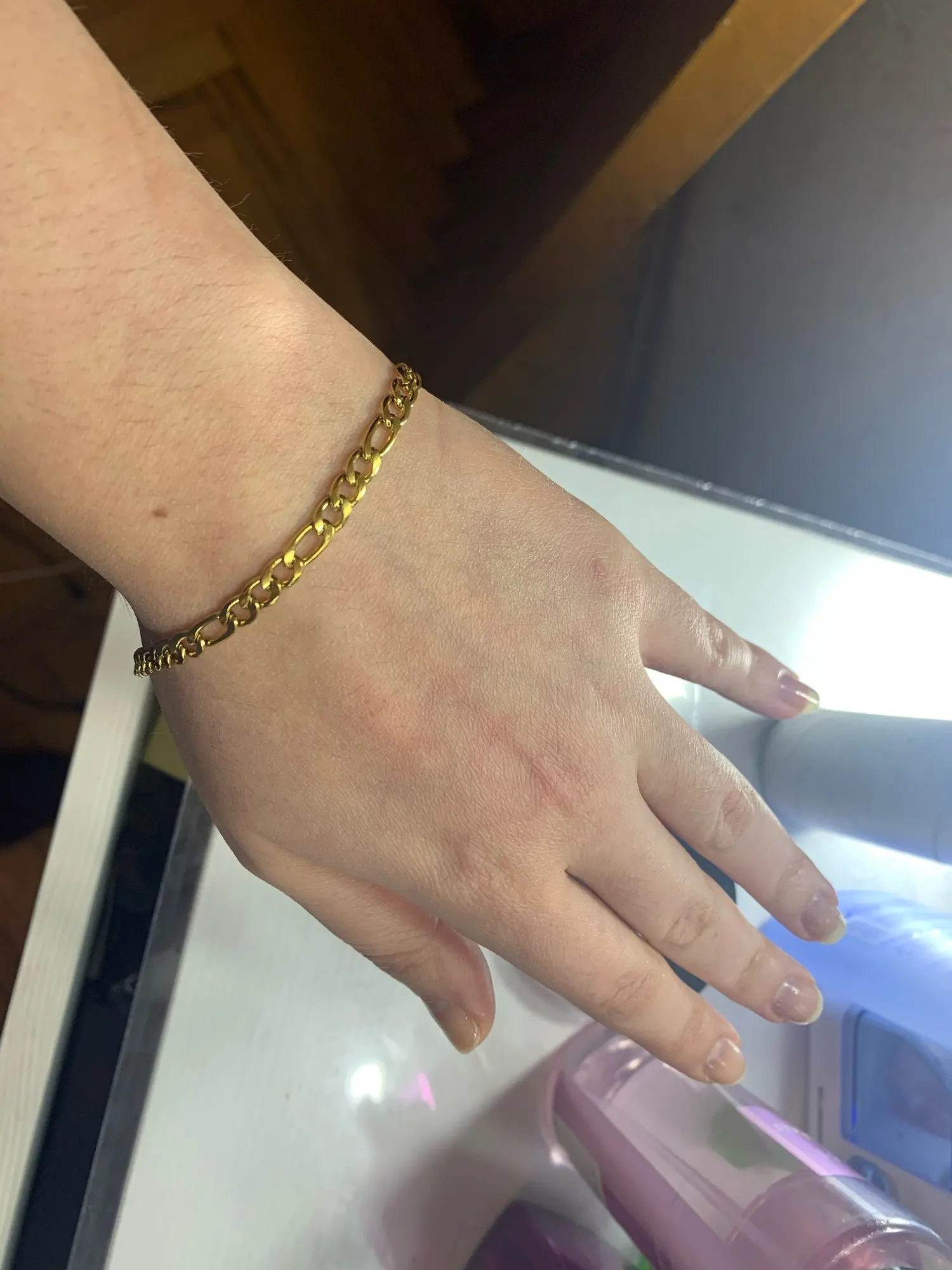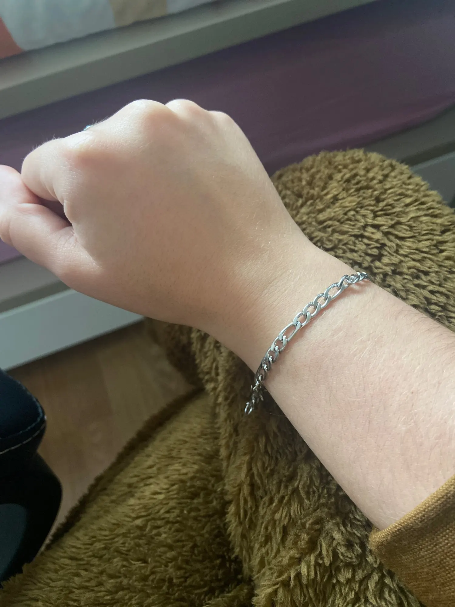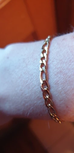 Хороший браслет не слишком ложный, но с другой стороны слишком большой и нет возможности затянуть, потому что крючок не помещается в другие звенья. Нет аллергии (моя кожа реактивная).
