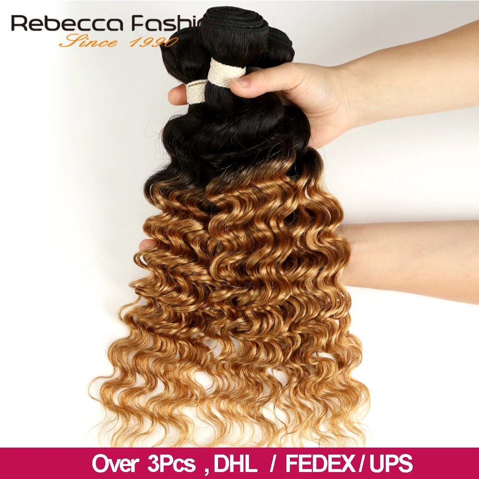 Ребекка Омбре Бразильские глубокие волнистые пучки 134 шт Реми 2 тона цвет T1B27 # T1B30 # T1B99J # 100% человеческие пучки волос