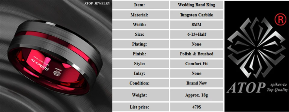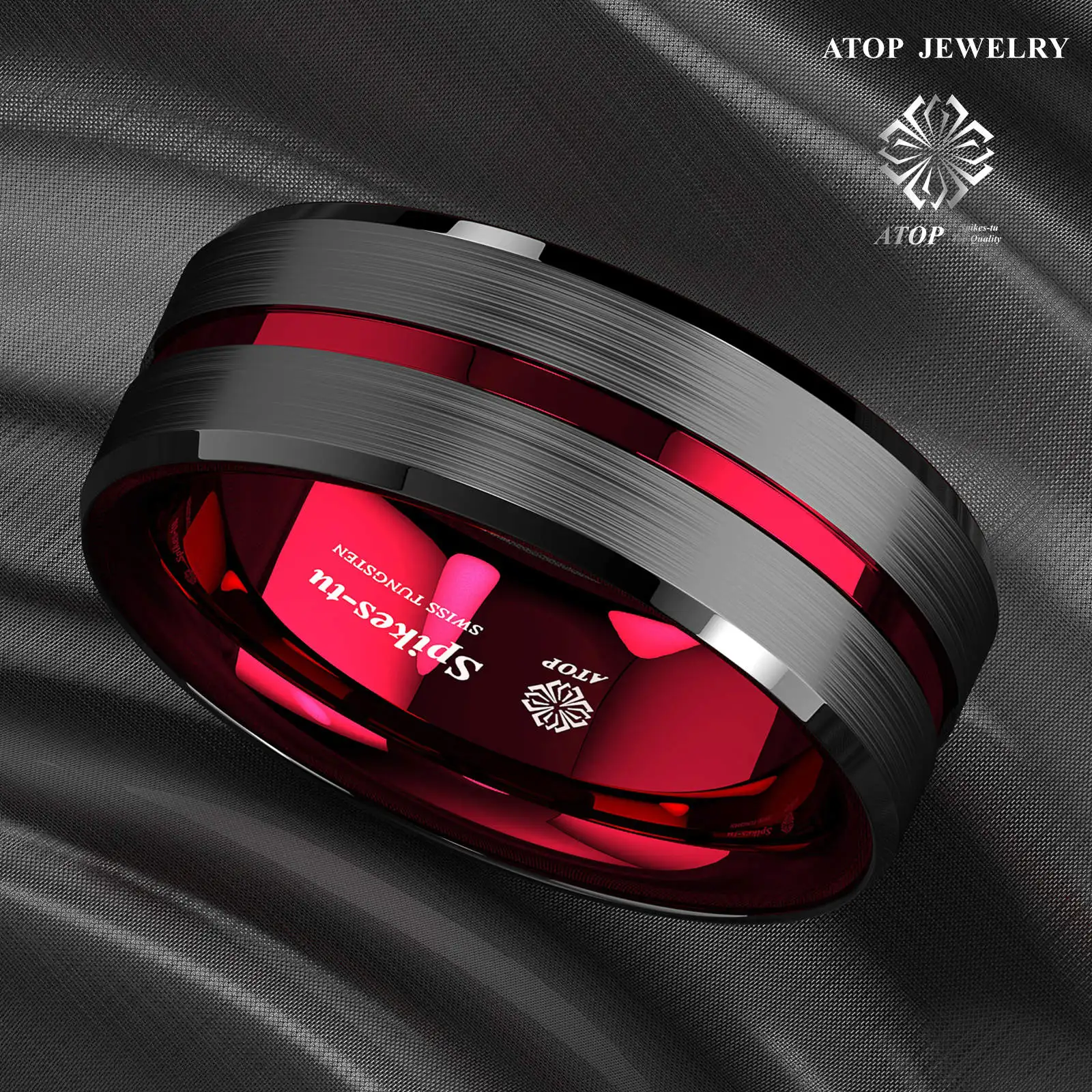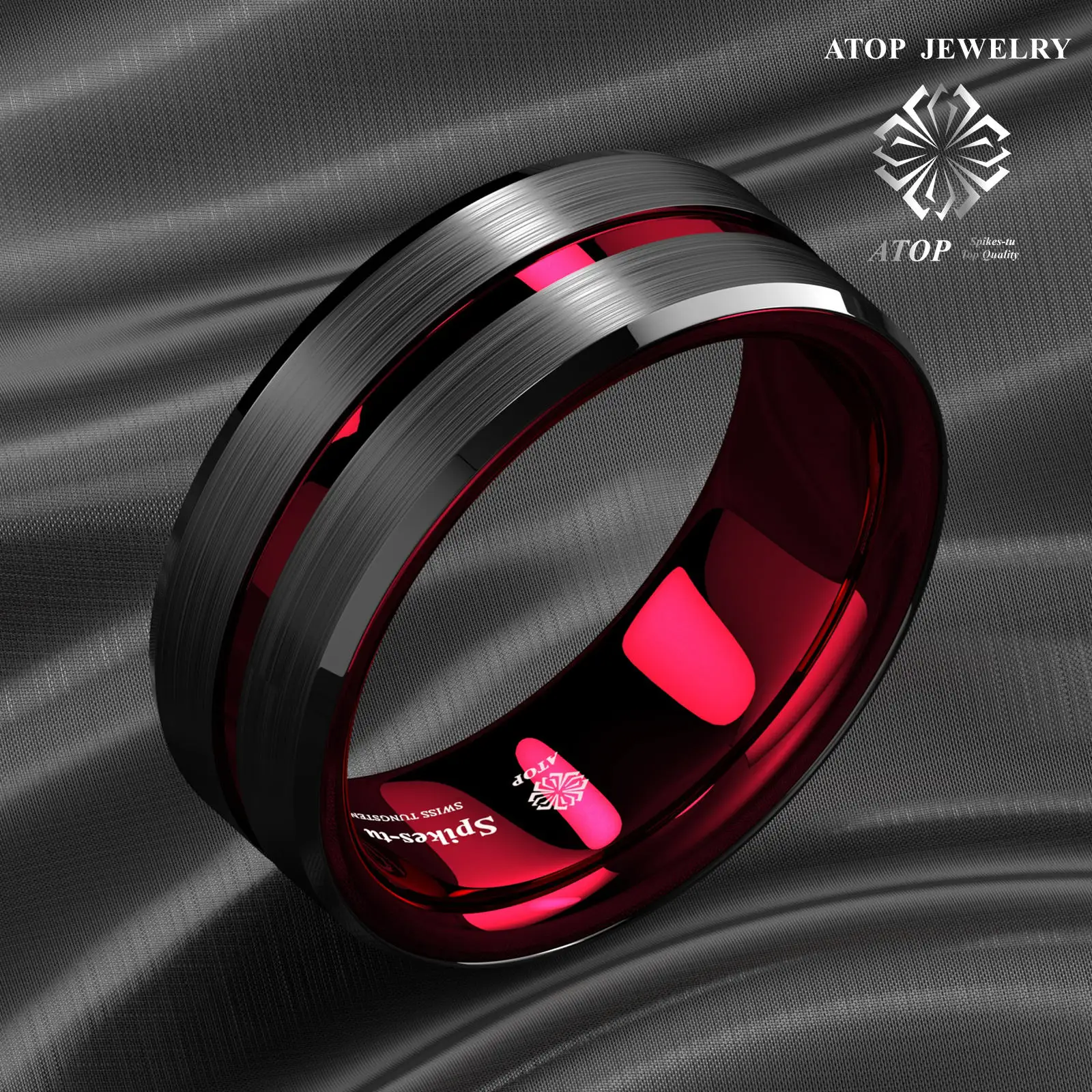 Мужское вольфрамовое кольцо ATOP 8 мм, обручальное кольцо из черног...