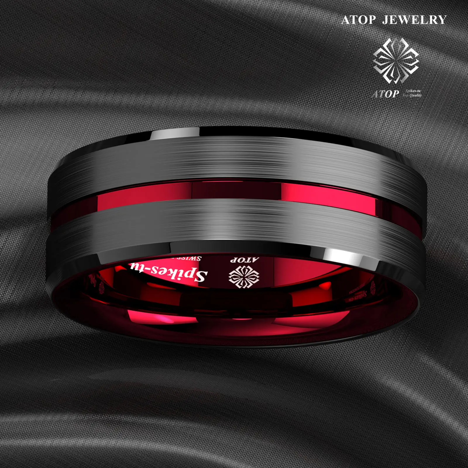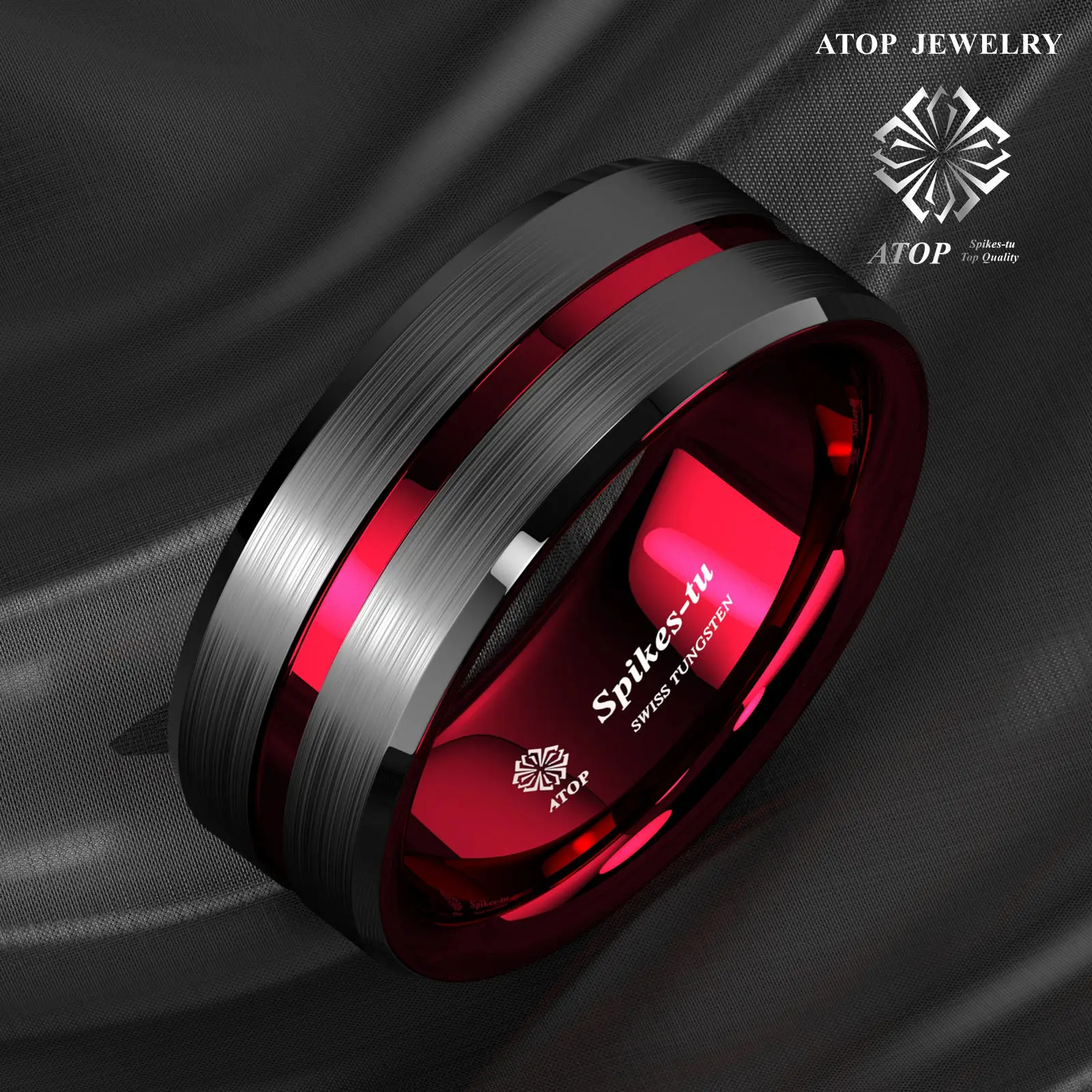 Обручальное кольцо из карбида вольфрама с тонкой красной линией, 8 мм