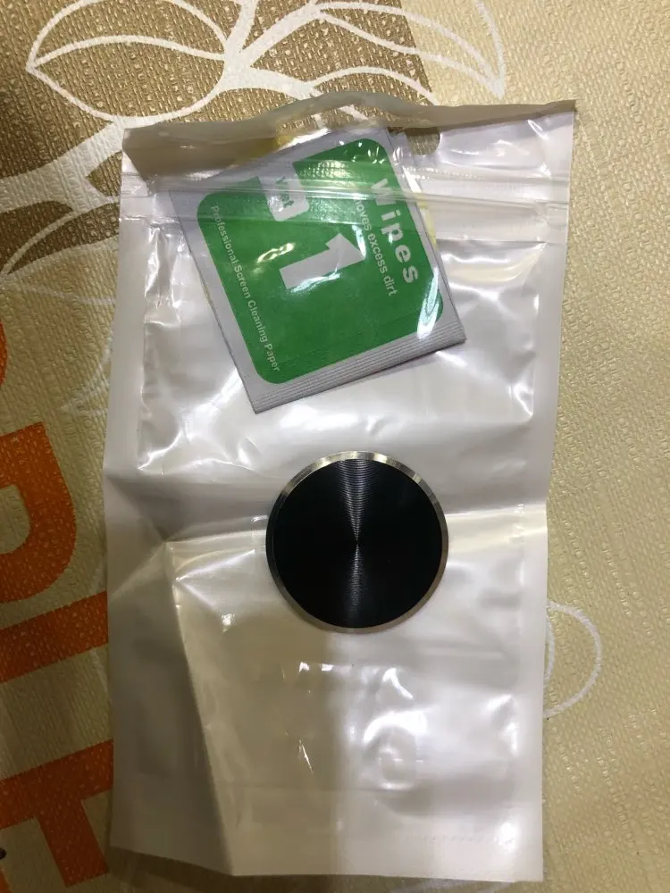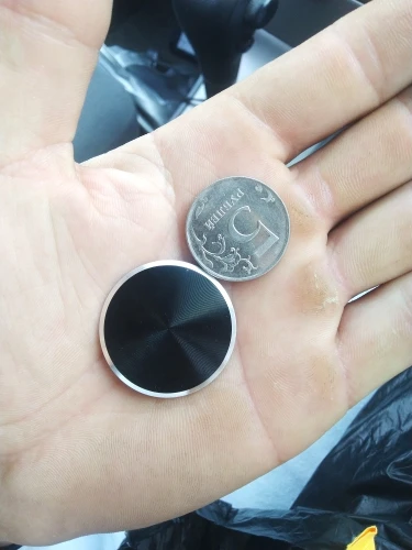 Качественный и красивый диск для крепления телефона к магнитному держателю, довольно плоский, дискомфорта при использовании на телефоне не доставляет. Лучше чем просто металлическая пластина, меньше царапается и красивее выглядит. Текстурированный метал, интересно отражает свет. На фото старая пластина, ходил с ней года два, потертости в реале не так бросаются в глаза. Беру не в первый раз, советую.