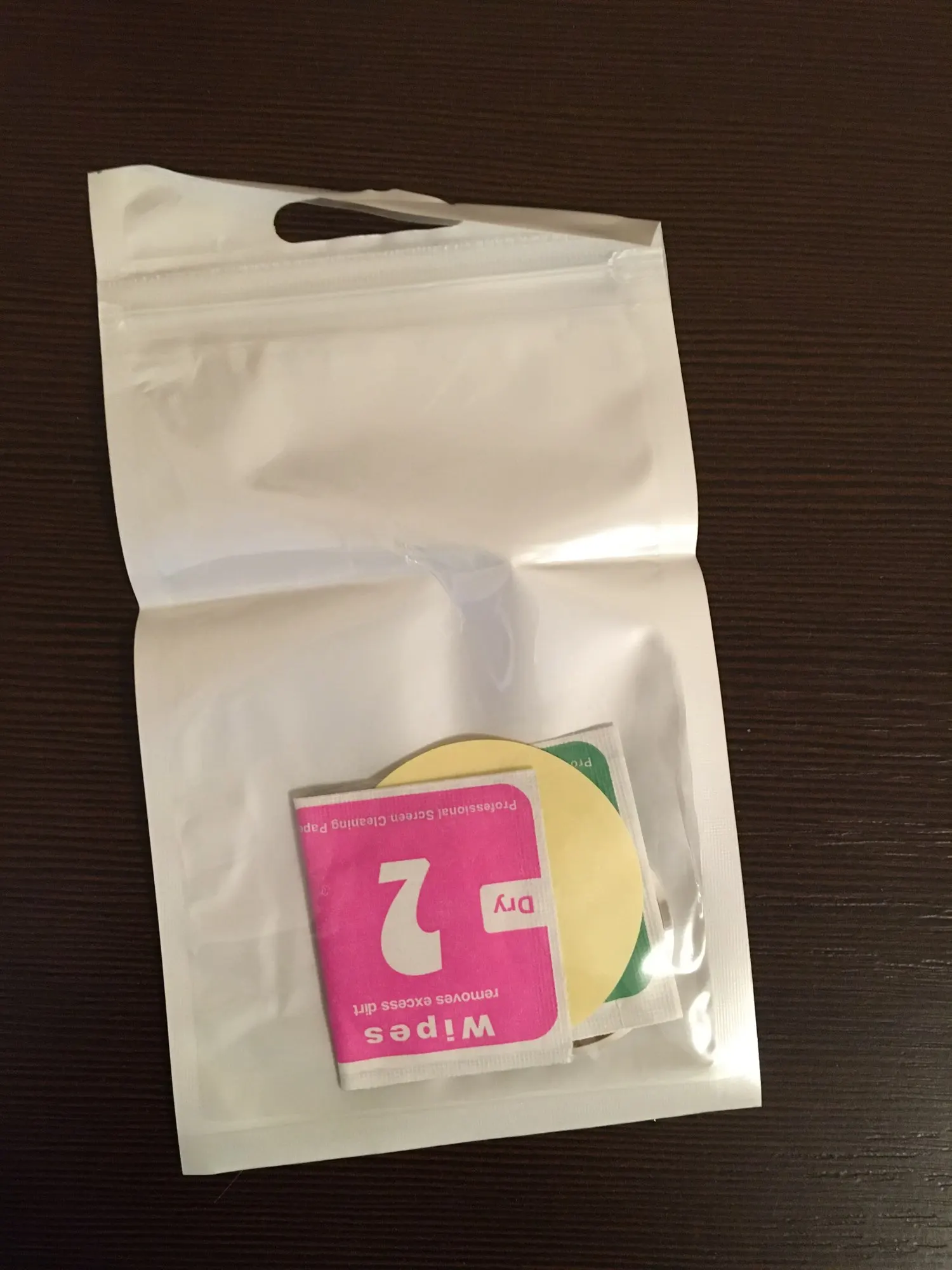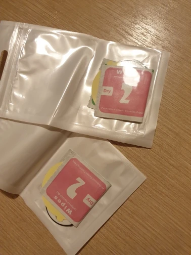 Товар приехал быстро. В комплекте были две маленькие салфетки - мокрая и сухая. Спасибо.