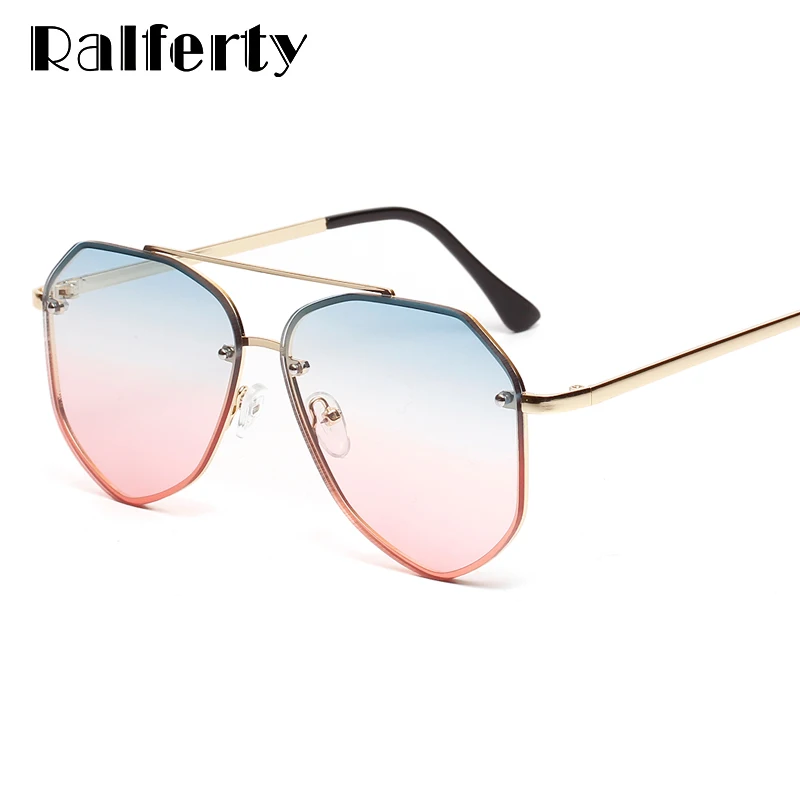 Ralferty Pilot Солнцезащитные очки женские градиентные коричневые солнцезащитные очки без оправы UV400 покрытие очки Плоские линзы оттенки женские Oculos W2326